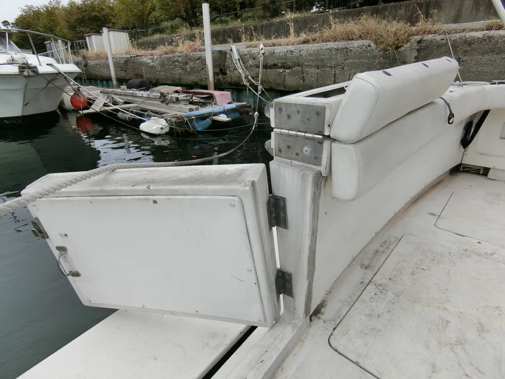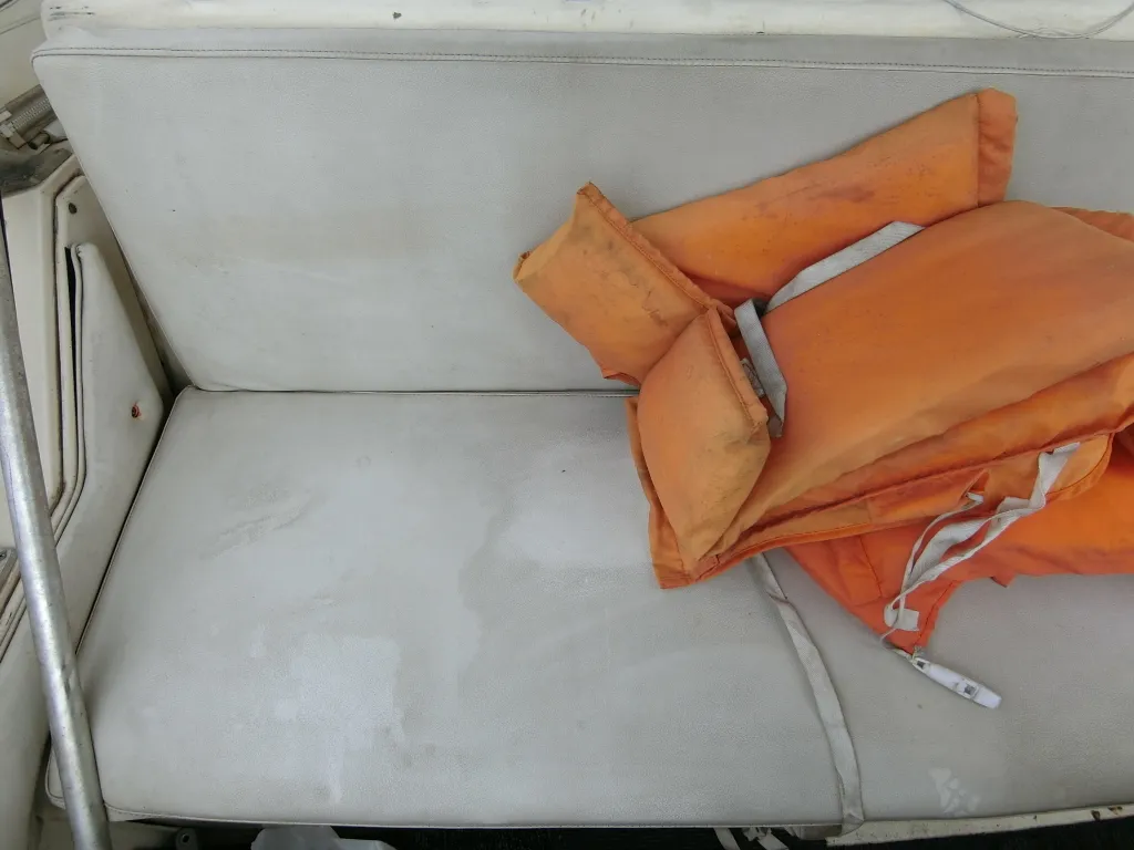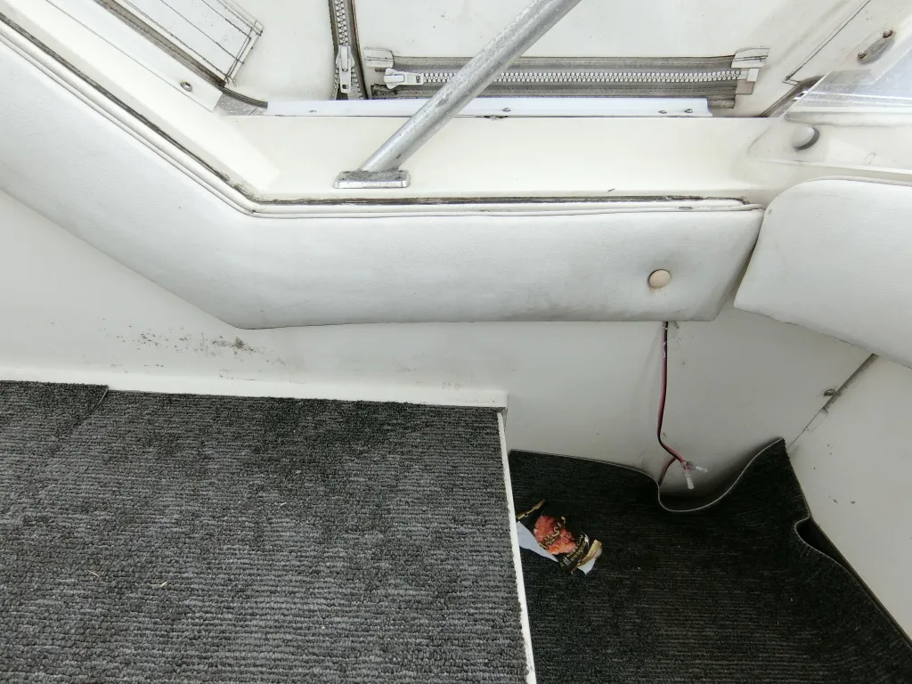 ・操船席シートとナビシートは使用感があり汚れも目につきますが、座面と背もたれの破れはありません。