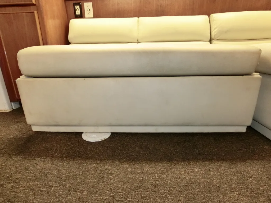 船内は広く右手にL字型の大人が3人程度座れる白いソファーがあり、多少の汚れはあるものの切れなく