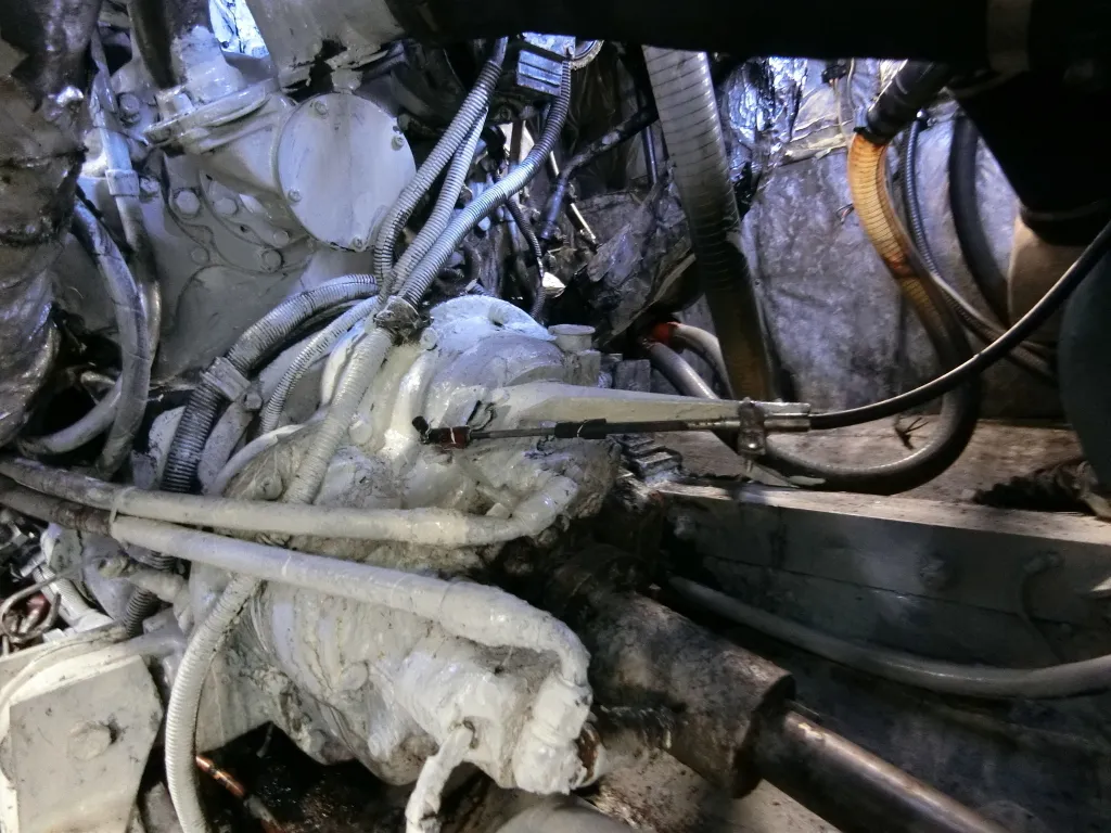 エンジンをブロックだけの状態にバラし、新品のピストン・ライナー・インジェクターを使用して組み上げたそうです。併せてターボ両舷共新品・エキゾーストマニホールドも両舷共新品交換したとのこと。