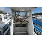操船席周りには各種計器類の他、GPS魚探が設置されています。