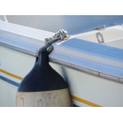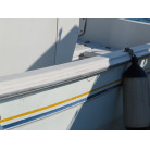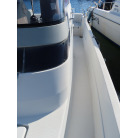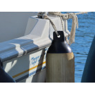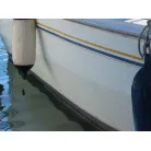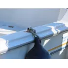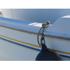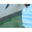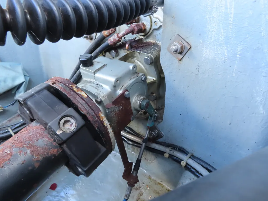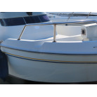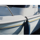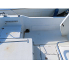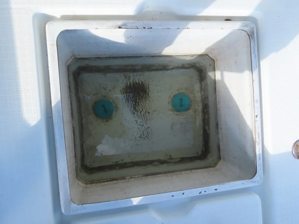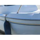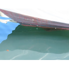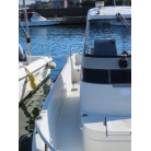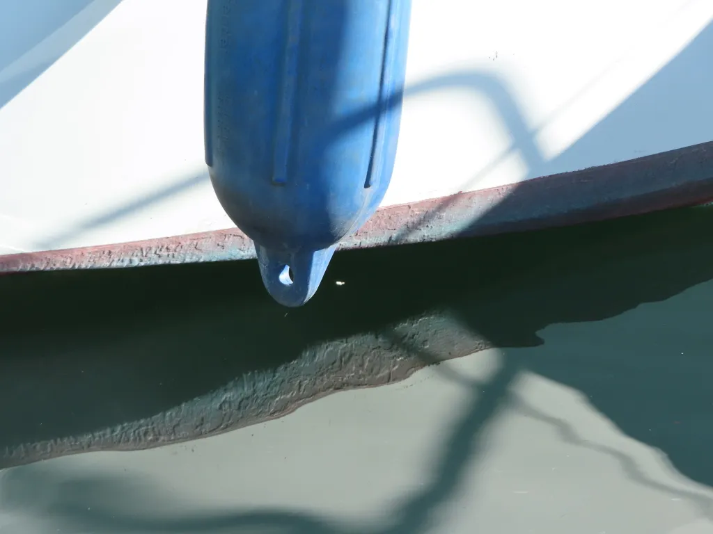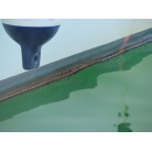新艇から約26年が経過していますので、船歴相当の使用感はあります、右舷側後方にへこみが見受けられましたがそれ以外には特に大きな傷もありませんが、取材時海上係留の為、船底の確認は出来ませんでしたので、外見から見えない部分に貝等の付着があるかもしれません。