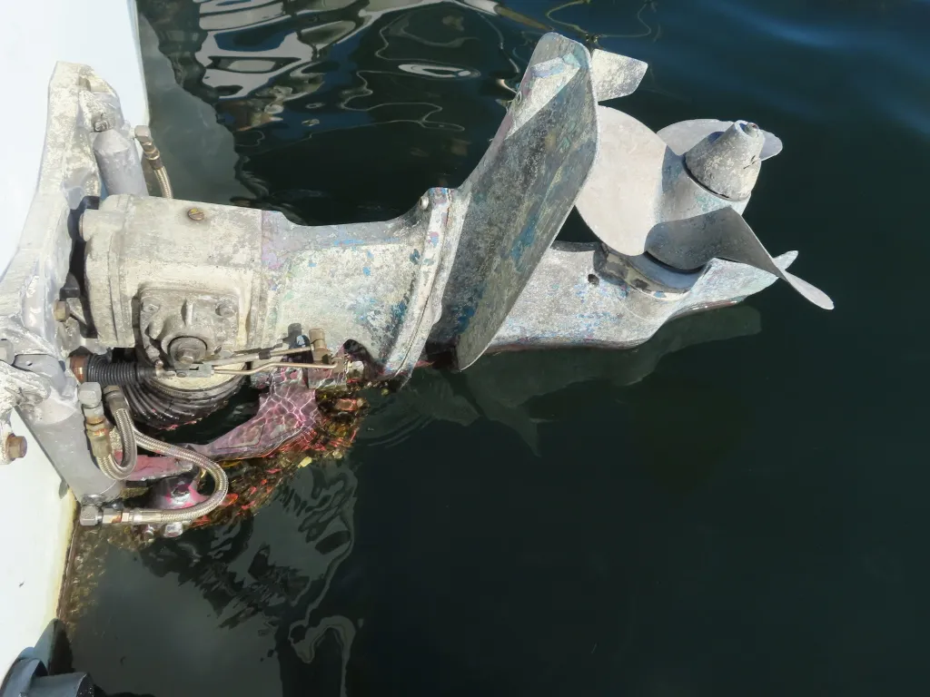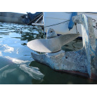 この艇のドライブは、ヤンマーのハイチルトのドライブですので、ペラが海面より上にでるのが特徴となります