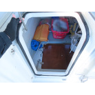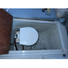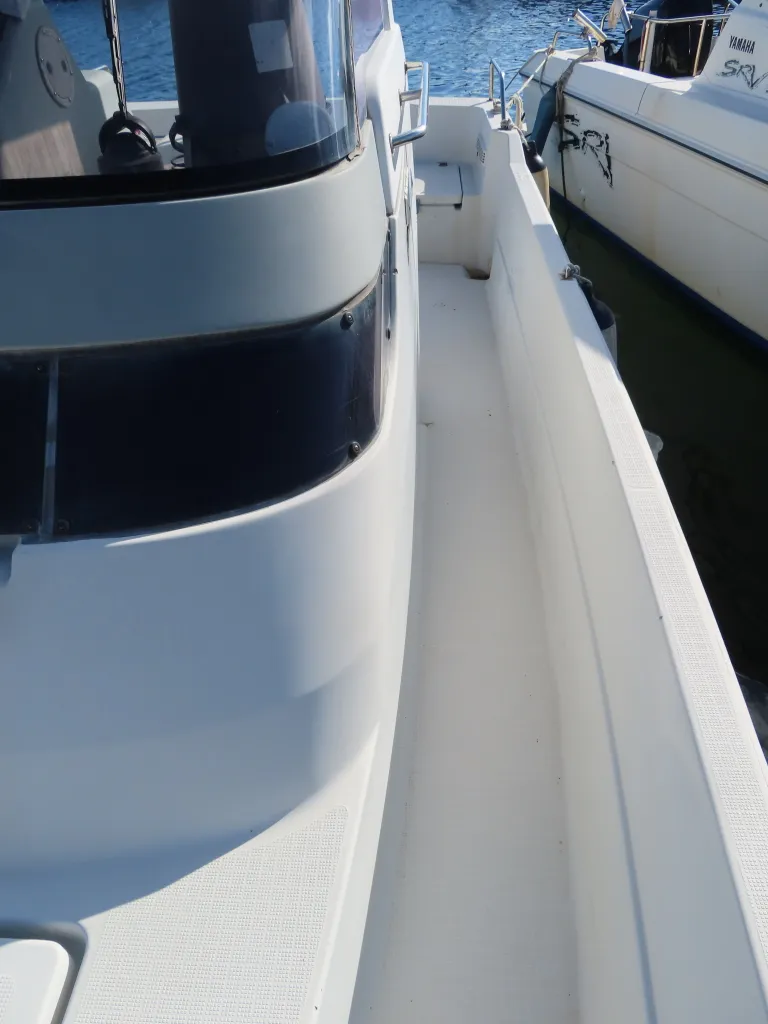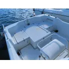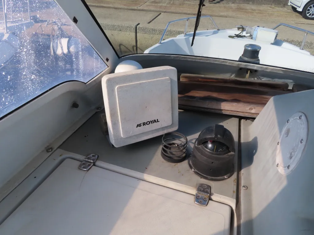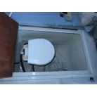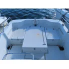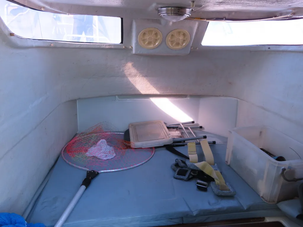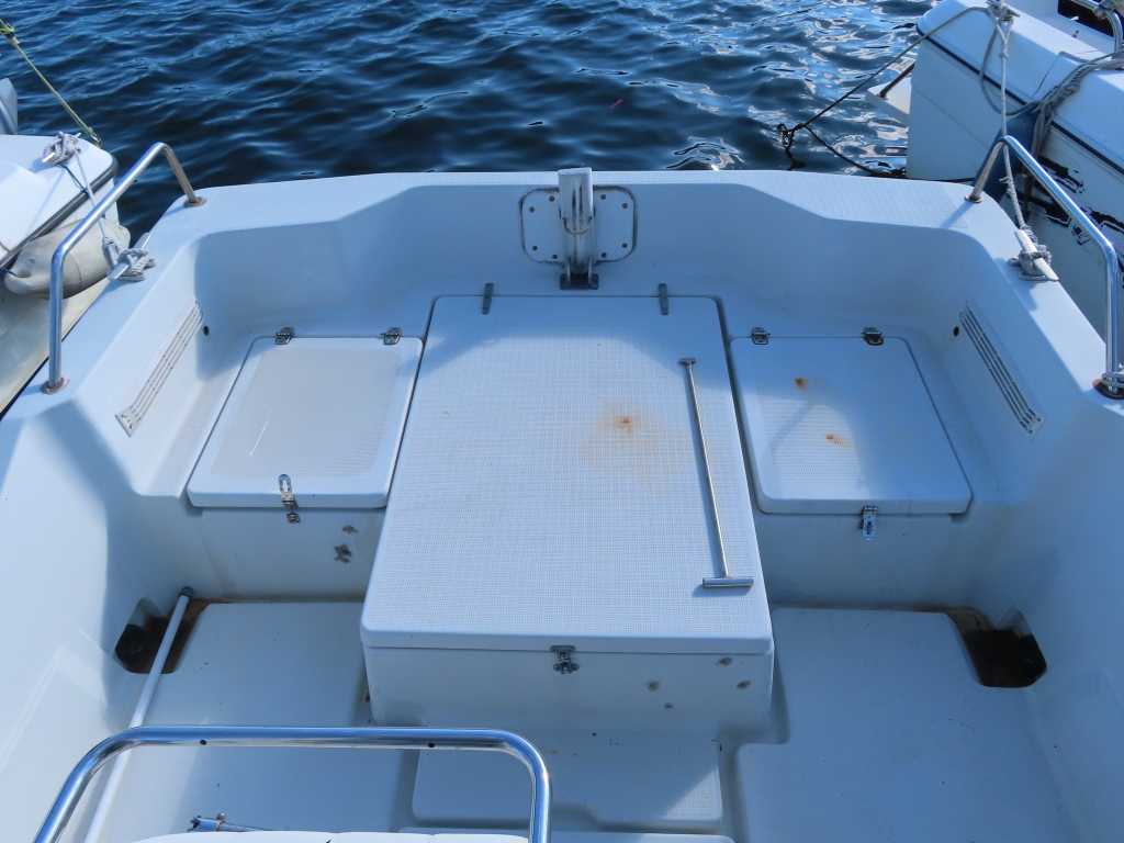24フィートクラスのバウバースとしてはゆとりの有るスペースを確保しており、センターのシートの下には電動式のマリントイレが装備されています。