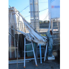 アフトデッキにイケスを装備し、取材時には装備されていませんが、スパンカーを装備しています。