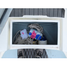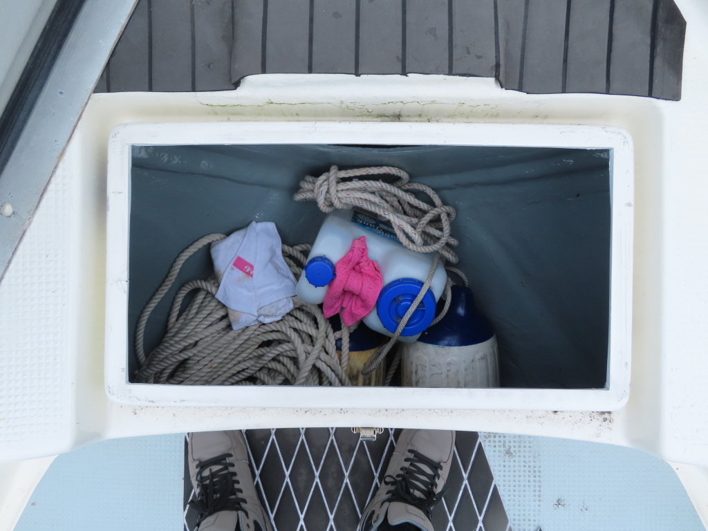 元々ドライブ艇だった時のエンジンルームを収納スペースとして利用出来るので、かなり広いスペースになっています。