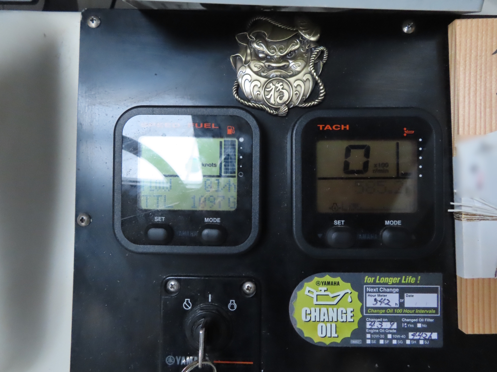 シンプルな計器パネルとなっており、パネル上部にはGARMIN製のGPS漁探を装備しています。