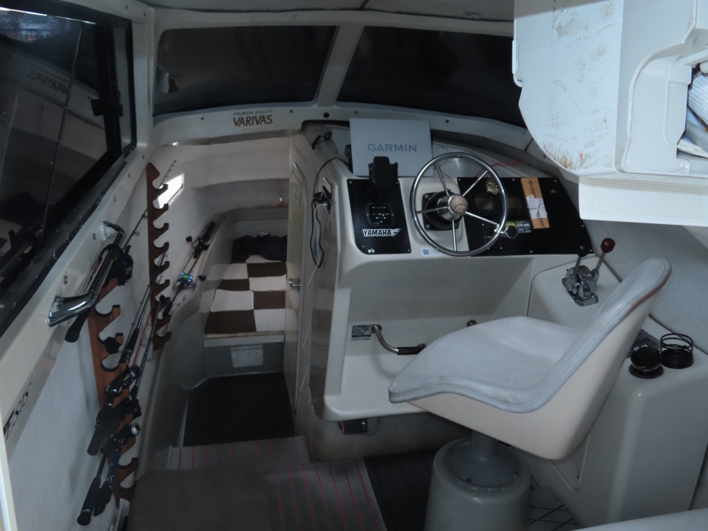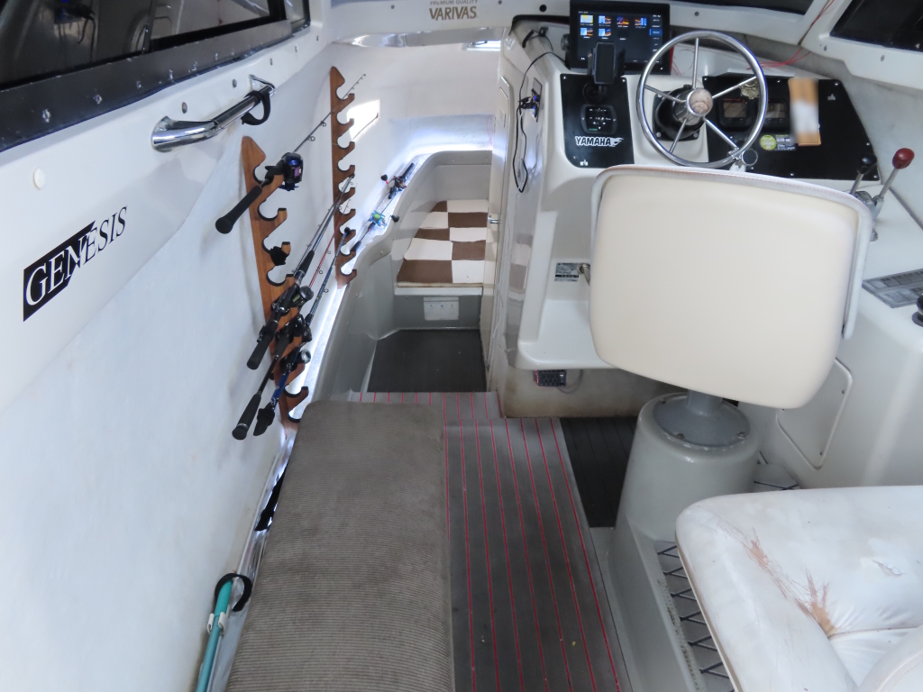 取材艇は1992年式の釣りファンに人気の高いヤマハUF-33 (33フィート)で、ウォークアラウンドタイプの船外機仕様の中古艇となります。