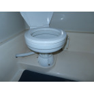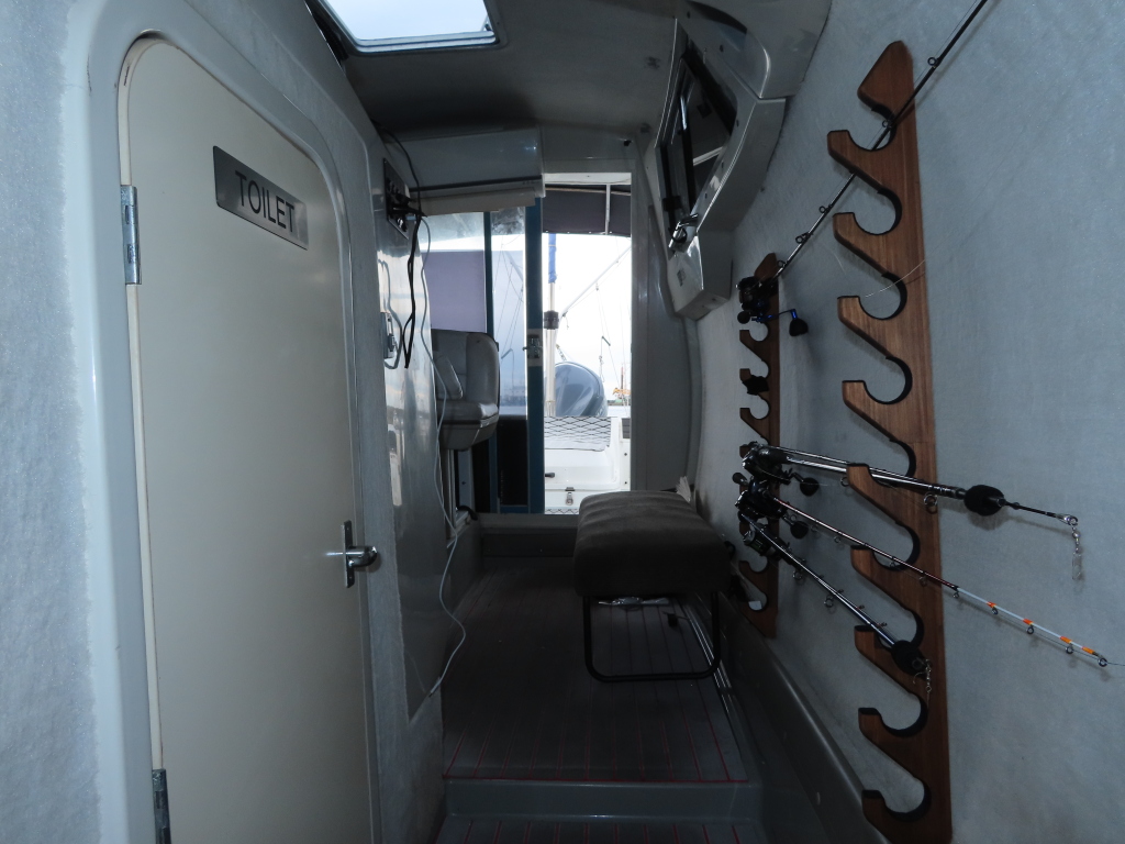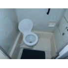 運転席の後ろにシートを装備していますし、運転席の前にはマリントイレ(電動)が装備されています。