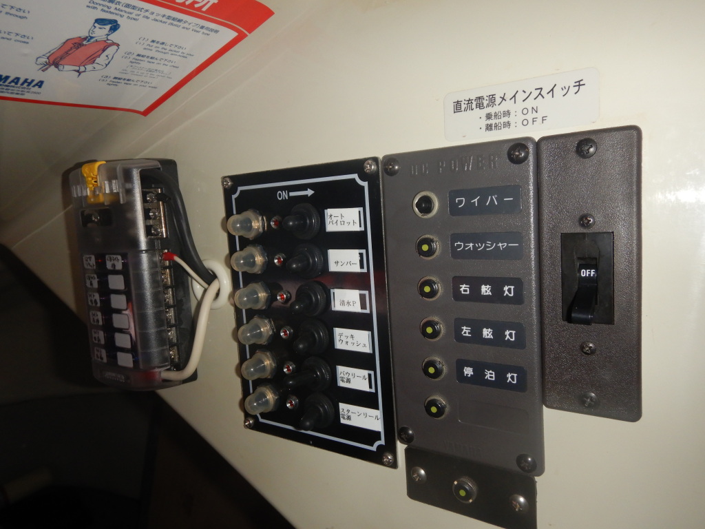 装備は、オプションのFSR、スパンカー、オートパイロット、GPS魚探、レーダー、電動リール電源、デッキウオッシャー等釣りに特化した物多数です。