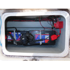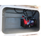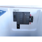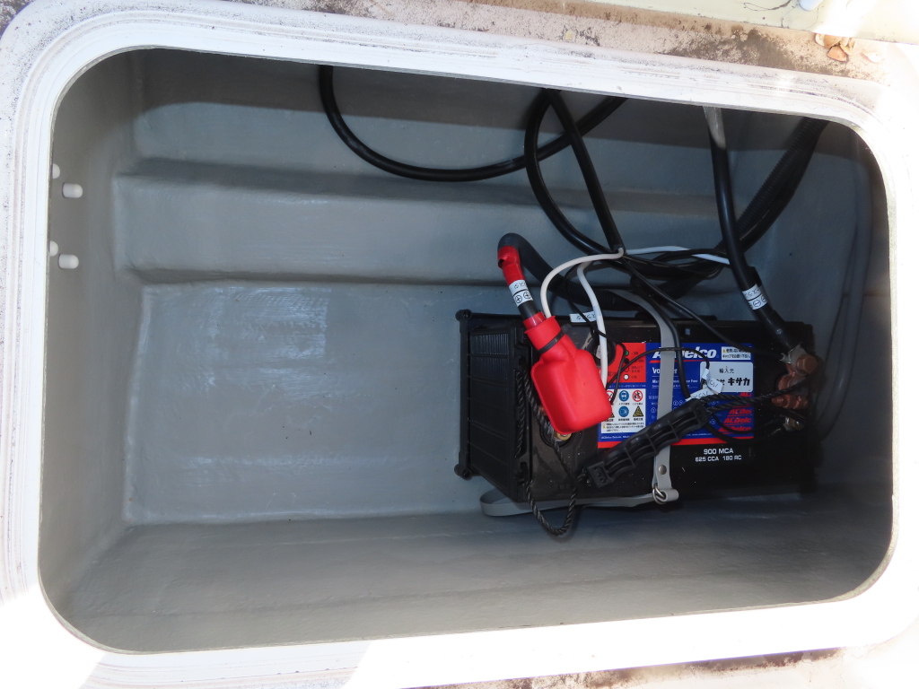 広いスペースのアフトデッキには、釣りには欠かせないイケスや電動リールの電源および各種物入れなどが装備されています。