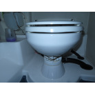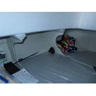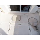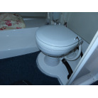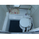 操船席の前方に電動個室マリントイレが装備されています。