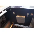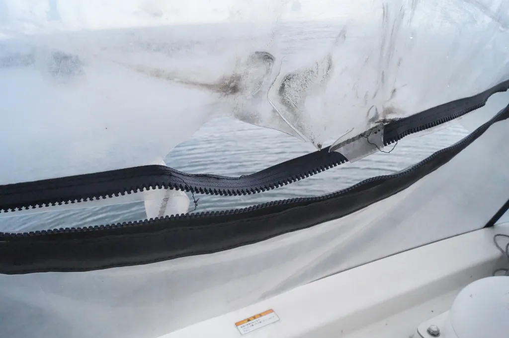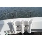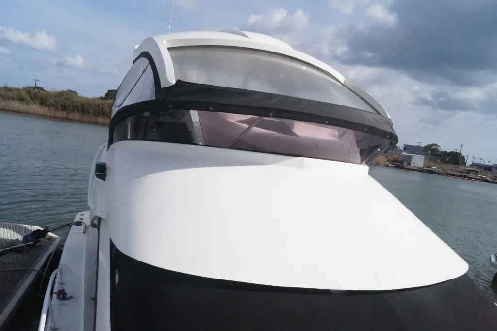 FB操船席はハードトップオーニング仕様で、フロントグラスは電動で開閉します。