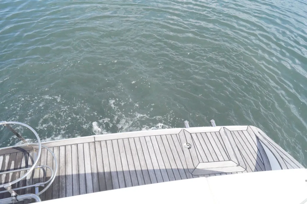 アフトデッキとトランサム部分はチーク張りになっています。