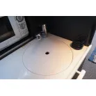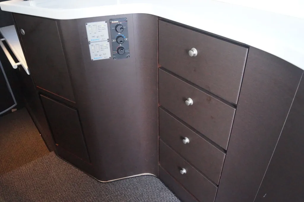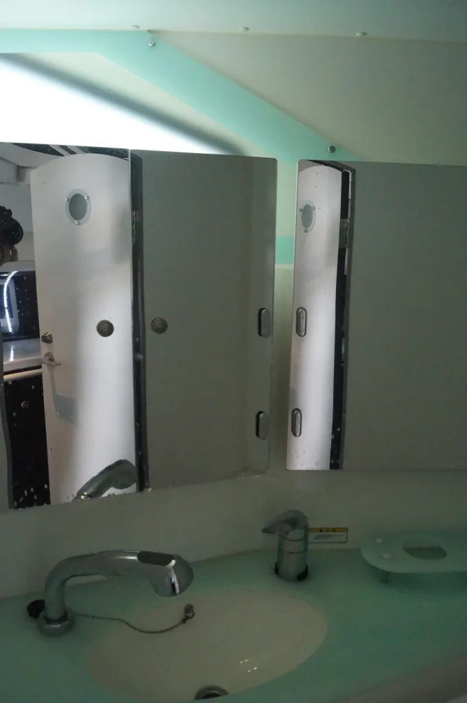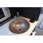 スタイリッシュなギャレーは手洗いシンクの蓋を閉じればフラットになり広く使えます。