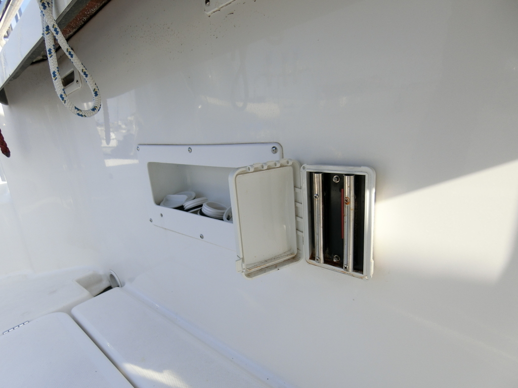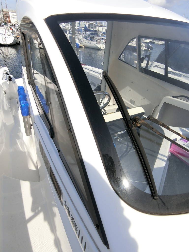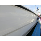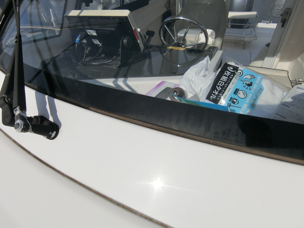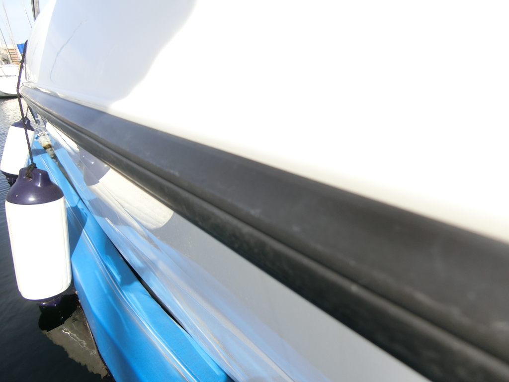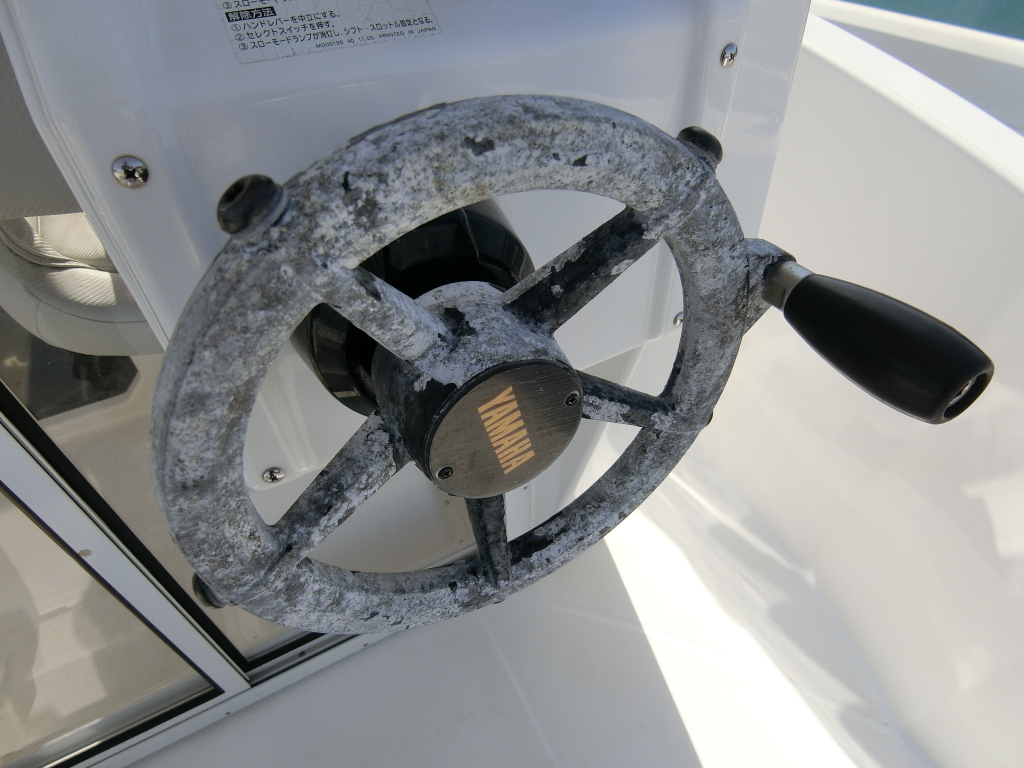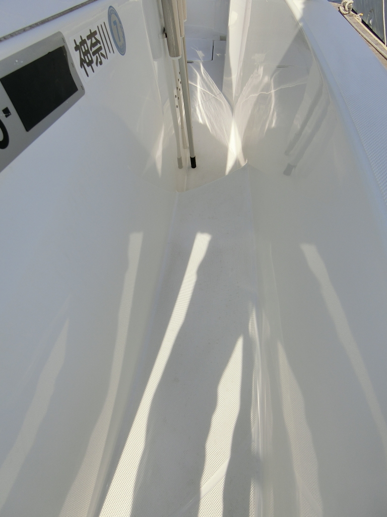 年式が新しい上に、全体的に使用感が無く、デッキ周りの靴汚れやハル先端周りの雨垂れ汚れなどは見られましたが、元々マリーナさんのレンタル艇だったそうで、現オーナーさんが購入する際に、目につくキズなどは直して貰ったようで、全体的にかなりキレイです。