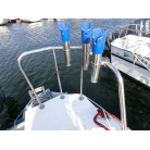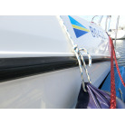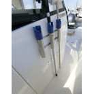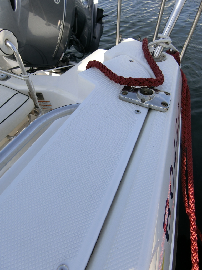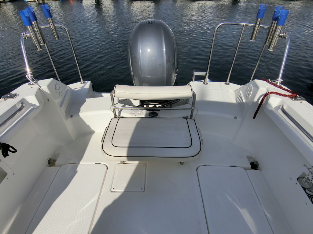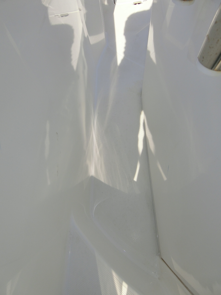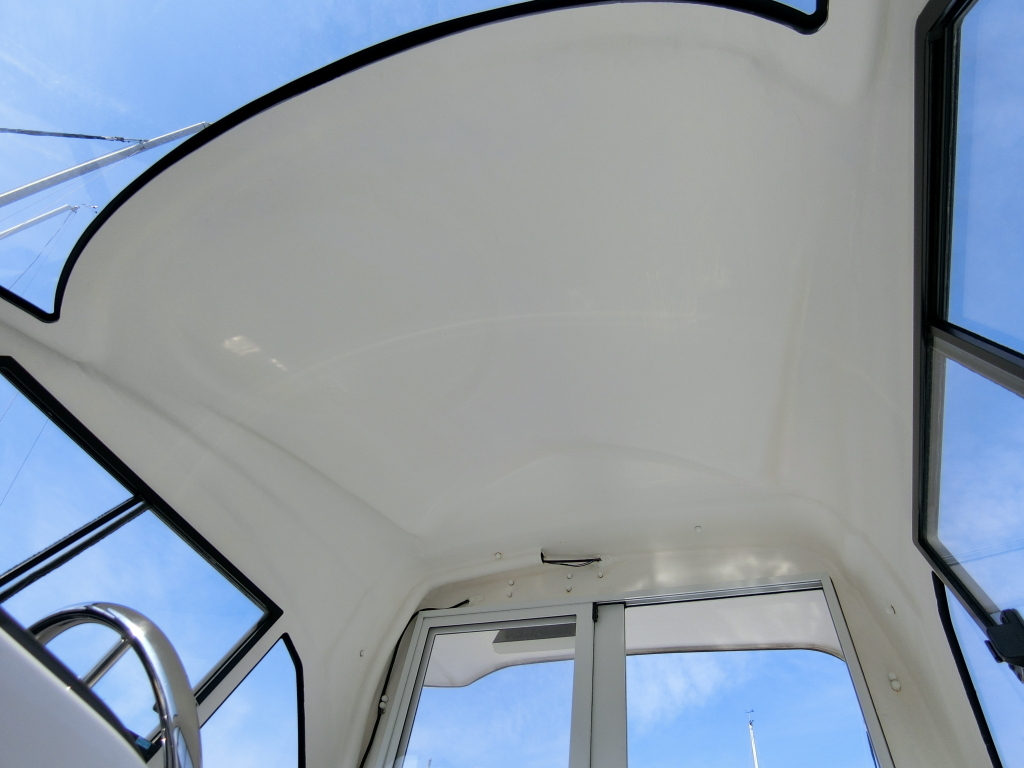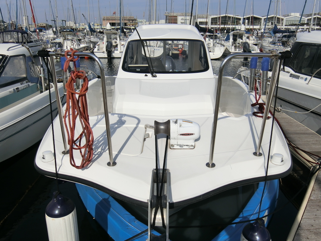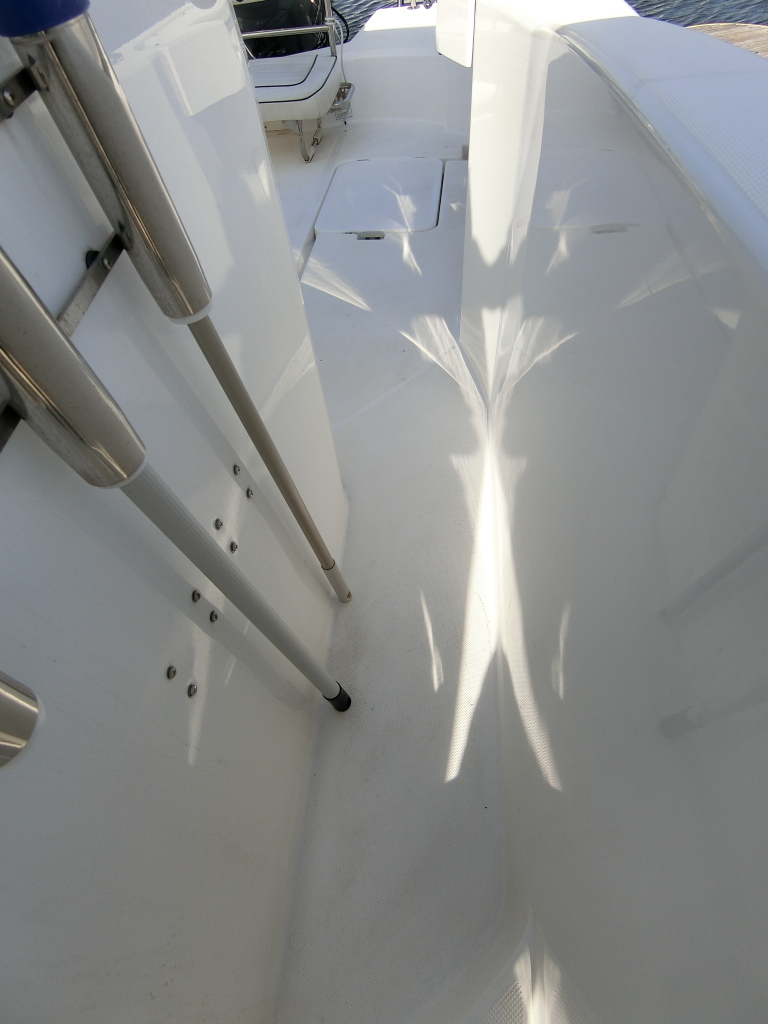 年式が新しい上に、全体的に使用感が無く、デッキ周りの靴汚れやハル先端周りの雨垂れ汚れなどは見られましたが、元々マリーナさんのレンタル艇だったそうで、現オーナーさんが購入する際に、目につくキズなどは直して貰ったようで、全体的にかなりキレイです。