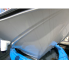 ハル先端部を中心に雨垂れの跡が見られましたが、目につく大きなキズは見られず、ハル自体には輝きもあり状態は良好でした。