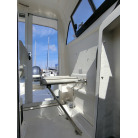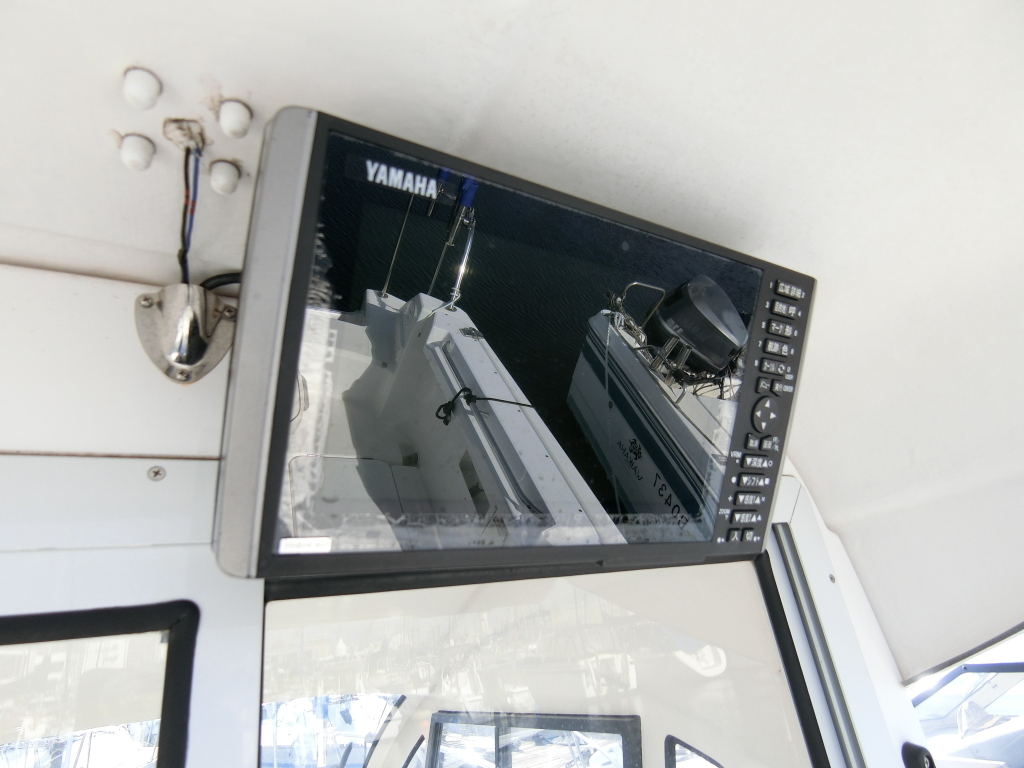 キャビン入口上部には、魚探のモニターが装備されていますので、アフトステーションでの操船時にも確認可能です。