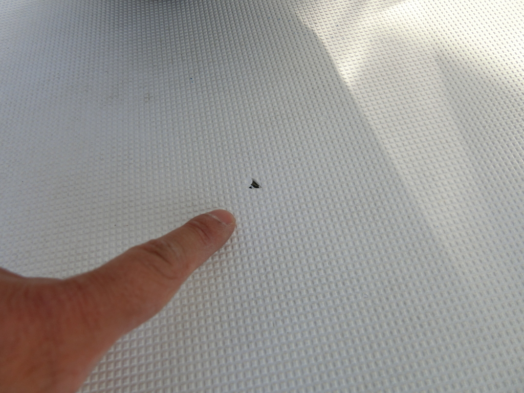 写真⑤はアフトデッキのFRPの小さな欠け2個所。