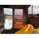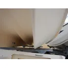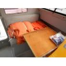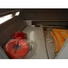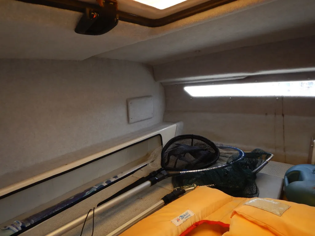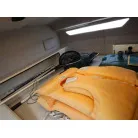 幅の広い船体を生かして、バウのベッドスペースは横向きに横になれる造りです。