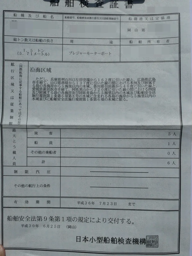 | 定員 | 6人 | 次回船検 | 本検査(2024年07月23日) |