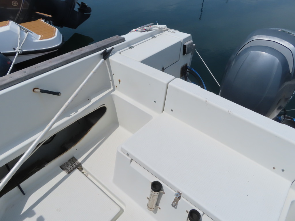 広いスペースのアフトデッキとなっていますので、釣りや家族でのクルージングなどにも十分使用できる艇です。