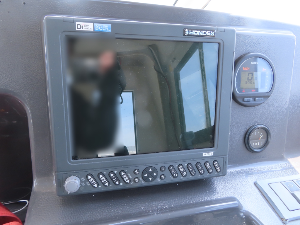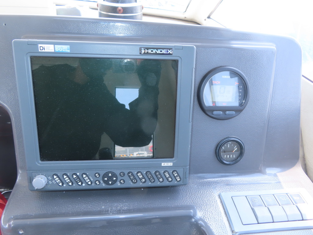 運転席には、HONDEX製のGPS魚探を装備しています。