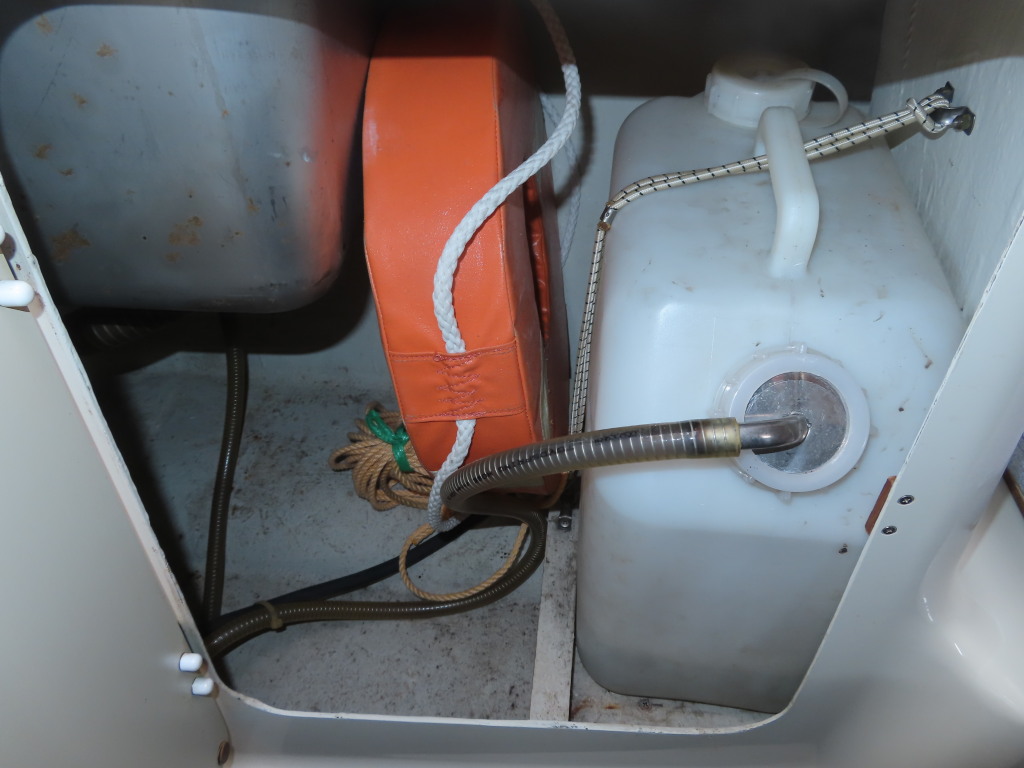 入口の左にシンクを装備し、約20Lのポリタンクも装備しています。