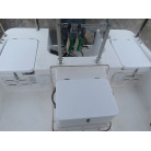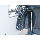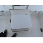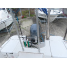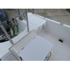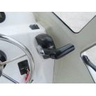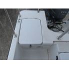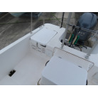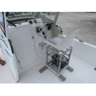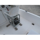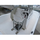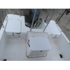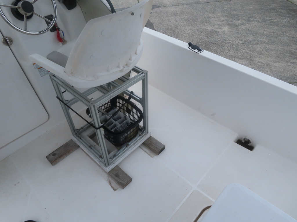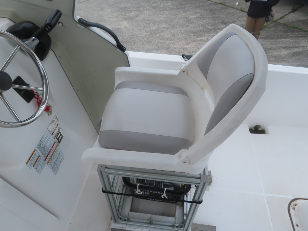 この艇を購入時に購入元からオプションの椅子は、釣りの時に邪魔になるの、移動できるタイプの椅子の方が良いと言われたため、オーナー様が別に依頼して作っていただいた操船シートが装備されていました。