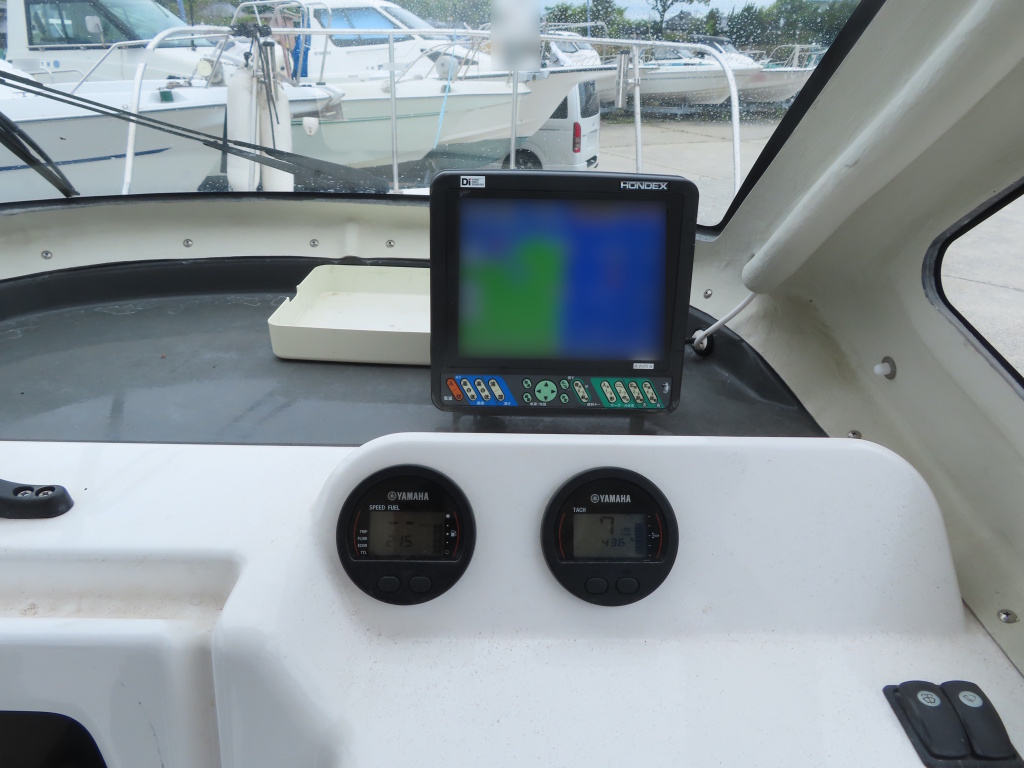 パネル中央に計器類を装備し、その上部にHONDEX製のGPS魚探を装備しています。