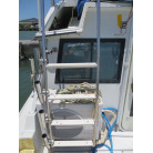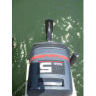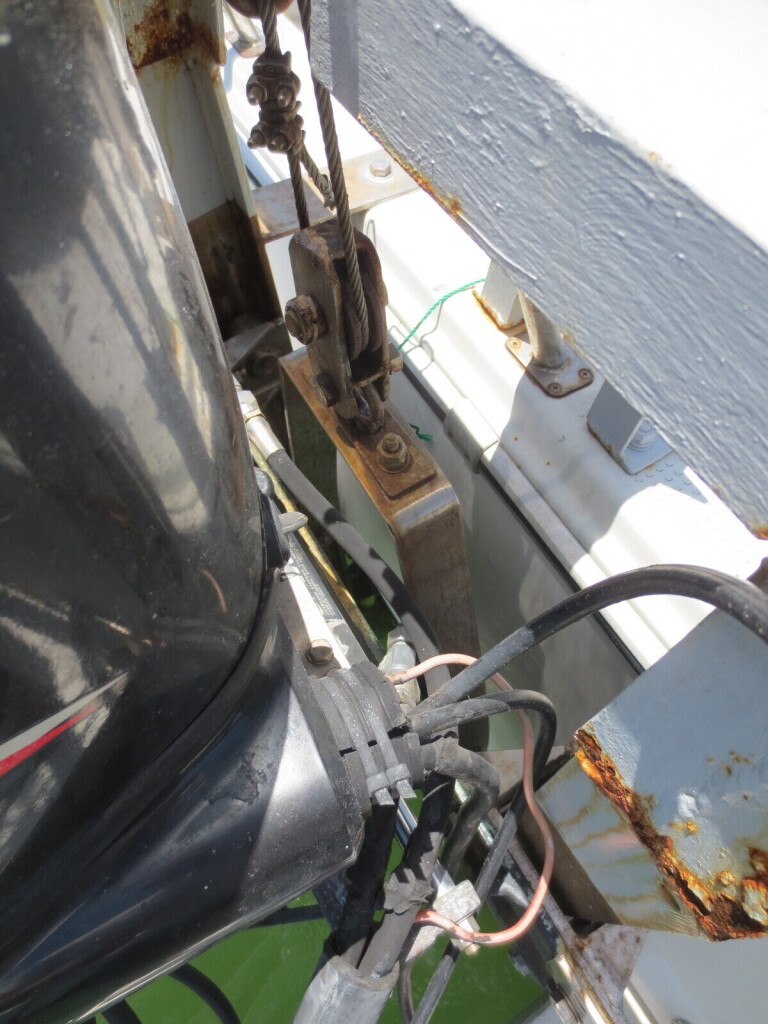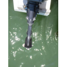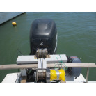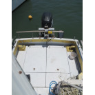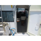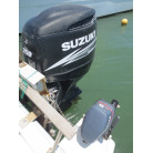 オリジナルでは、ディーゼルエンジン搭載のインアウトのドライブ艇で、年式からすると故障やトラブル等も心配になりますが、現艇はスズキ250馬力の船外機に換装されています。