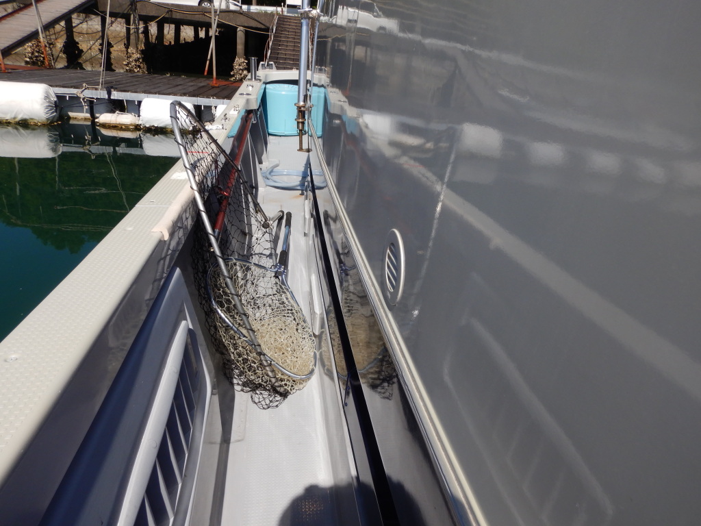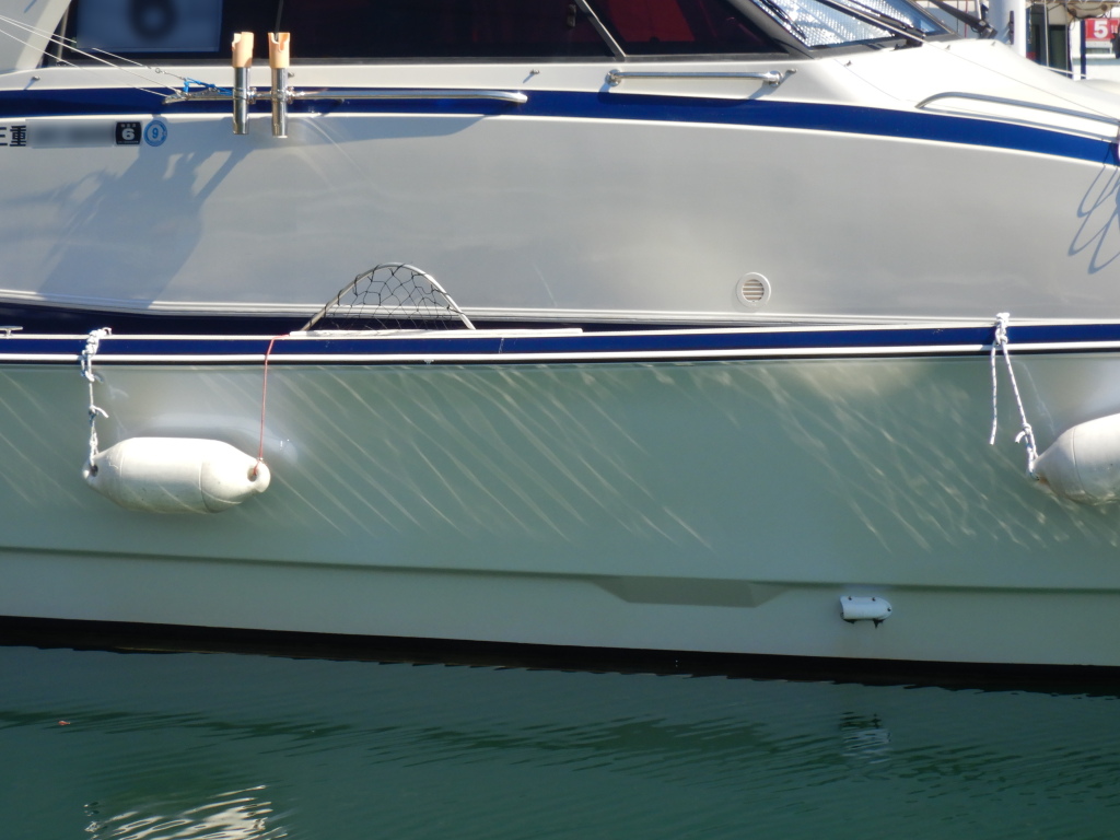 ハルには、目立つ傷は見られませんでしたが、ガンネルより上の部分に小さな塗装にのはげがありました。