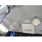 デッキにはアフトステーションも完備していて、キャビン入口には後方用のGPS魚探もあります。