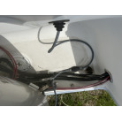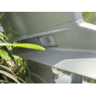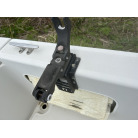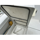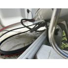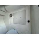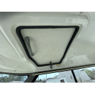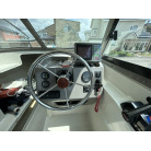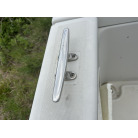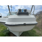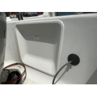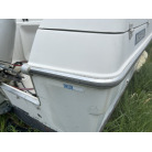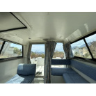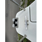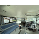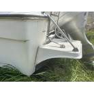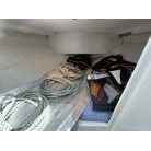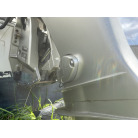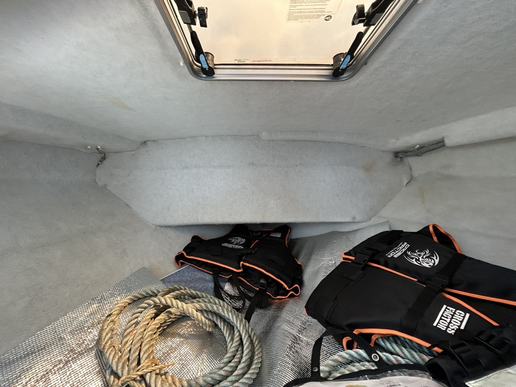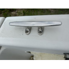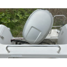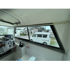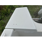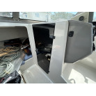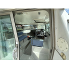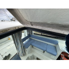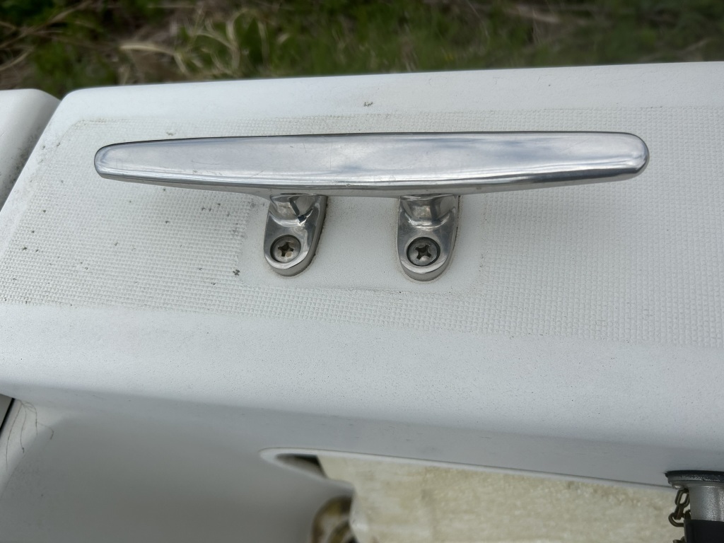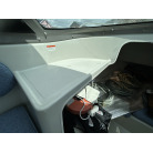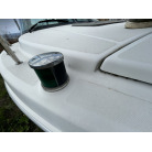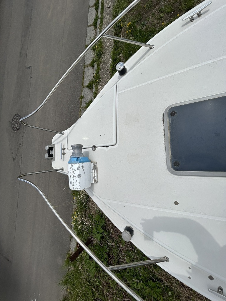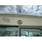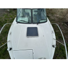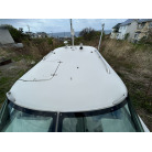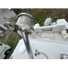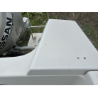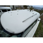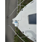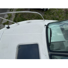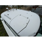 バウデッキ周りには、バウレールやアンカーローラー、クリートが付いています。アンカーローラーはスイッチ入りにしても動きませんので、メンテナンスが必要です。ハードトップには広いスペースがありますので、レーダー等の取り付けも検討できます。