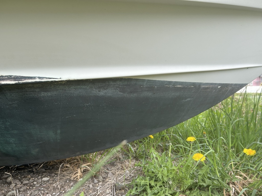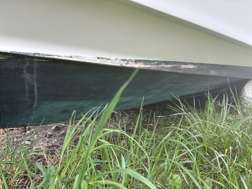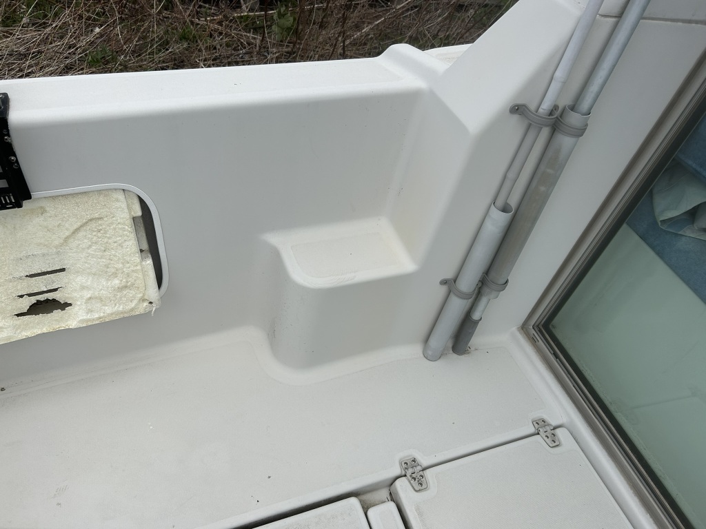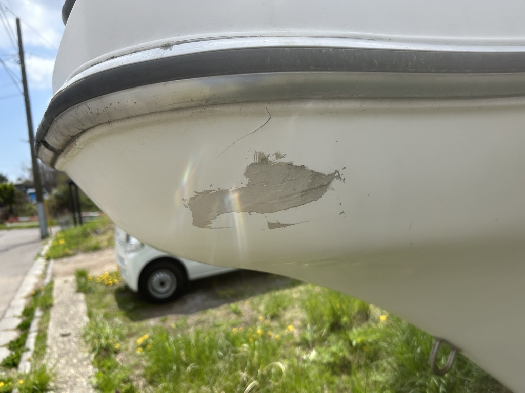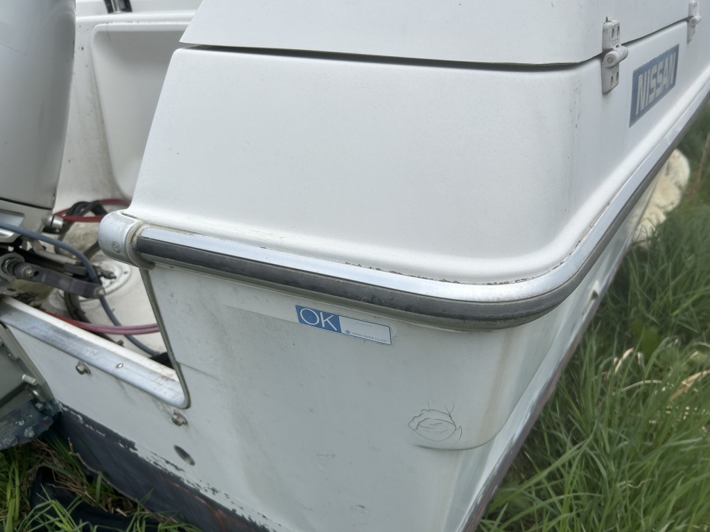 ガンネル周りは、大きなダメージもなく状態は良好と思います。左船首側の一部にパテで補修した箇所が見られます。