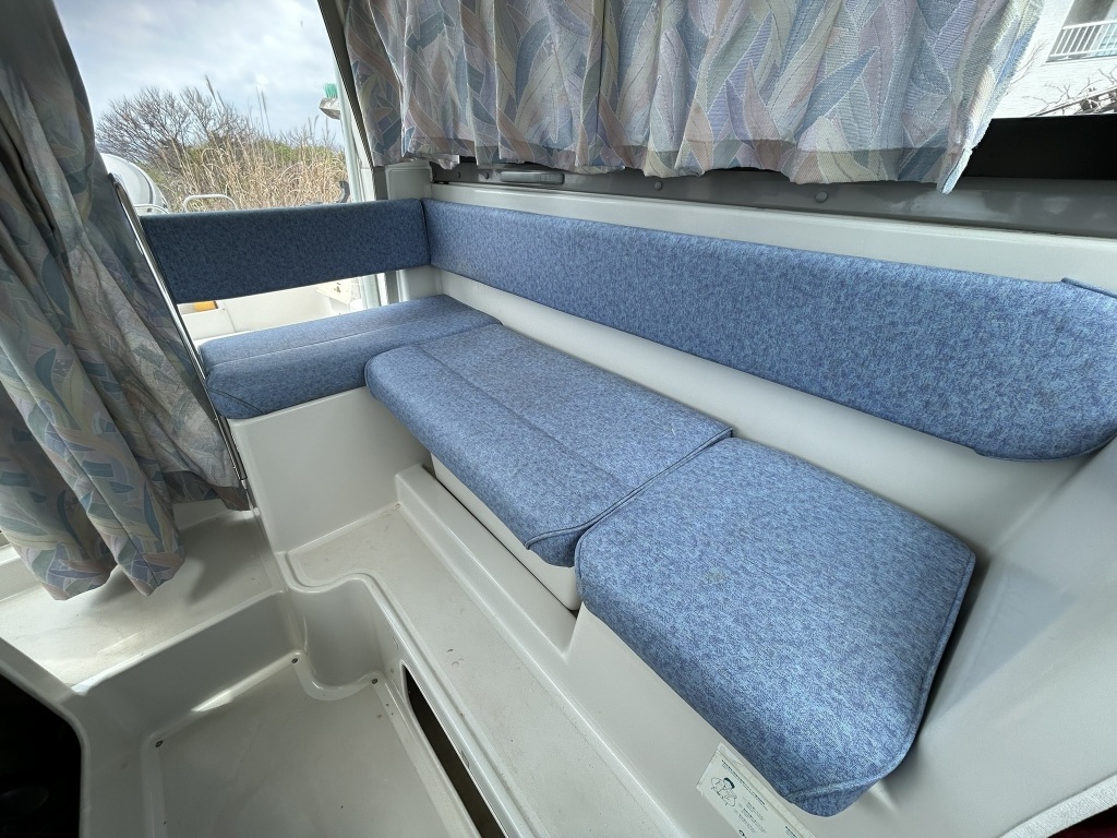 操船席シートにやぶれやシミが見当たらずきれいな印象です。※取材時は一時的にクッションを取り外しています。