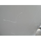 写真に写っている縦に液体が垂れたような跡は、撮影前に船を洗った際に残った水の垂れ跡ですので、指で擦ると簡単に取れます。(ハル周りの動画内でも、指で擦っているシーンがありますので、詳細は動画をご確認下さい。)