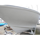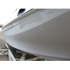 その為、右舷側のハルを中心にまだらに見えますが、上記のように表面が白くなっているだけですので、一度ハルをポリッシャーなどでキレイに磨けば見違えると思います。