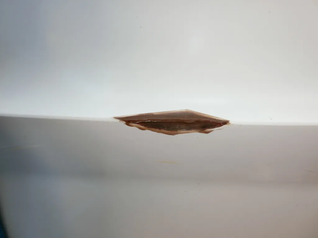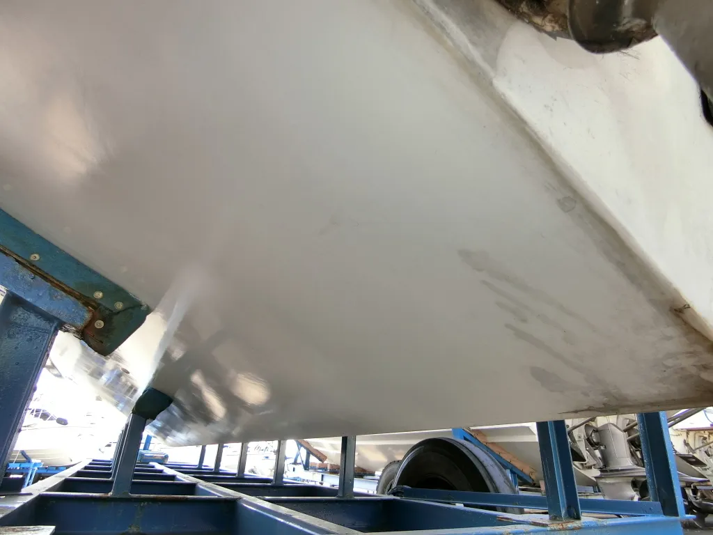 ・船底周りは一見綺麗ですが、擦り傷やその補修跡、塗装の剥がれが見られます。