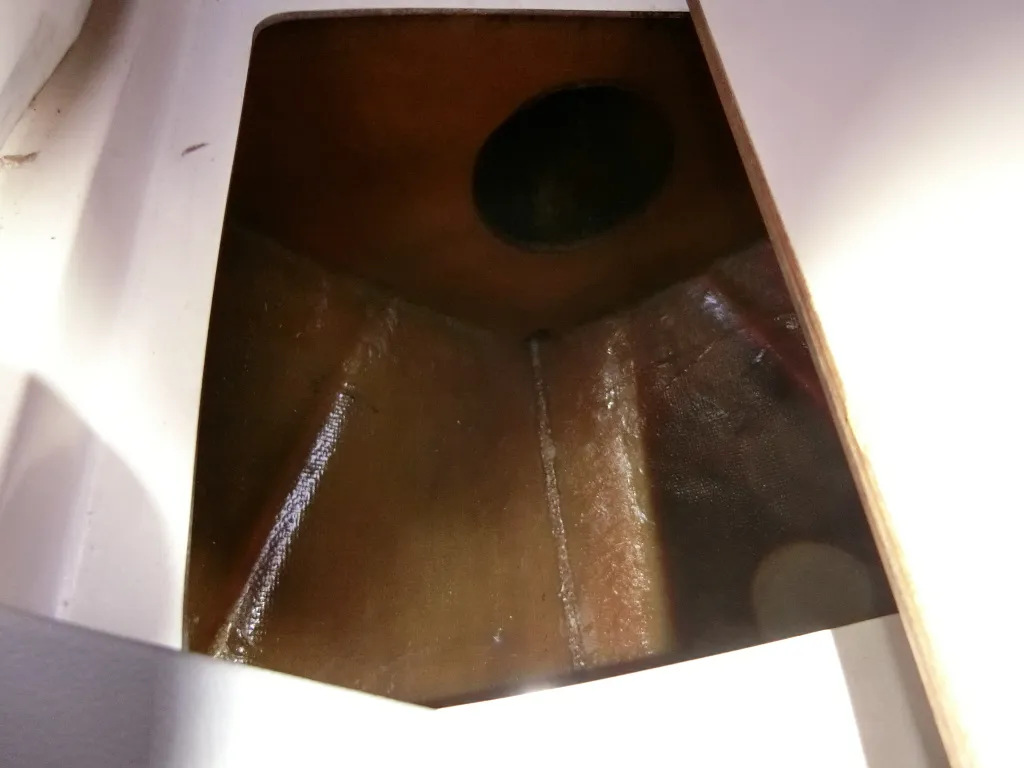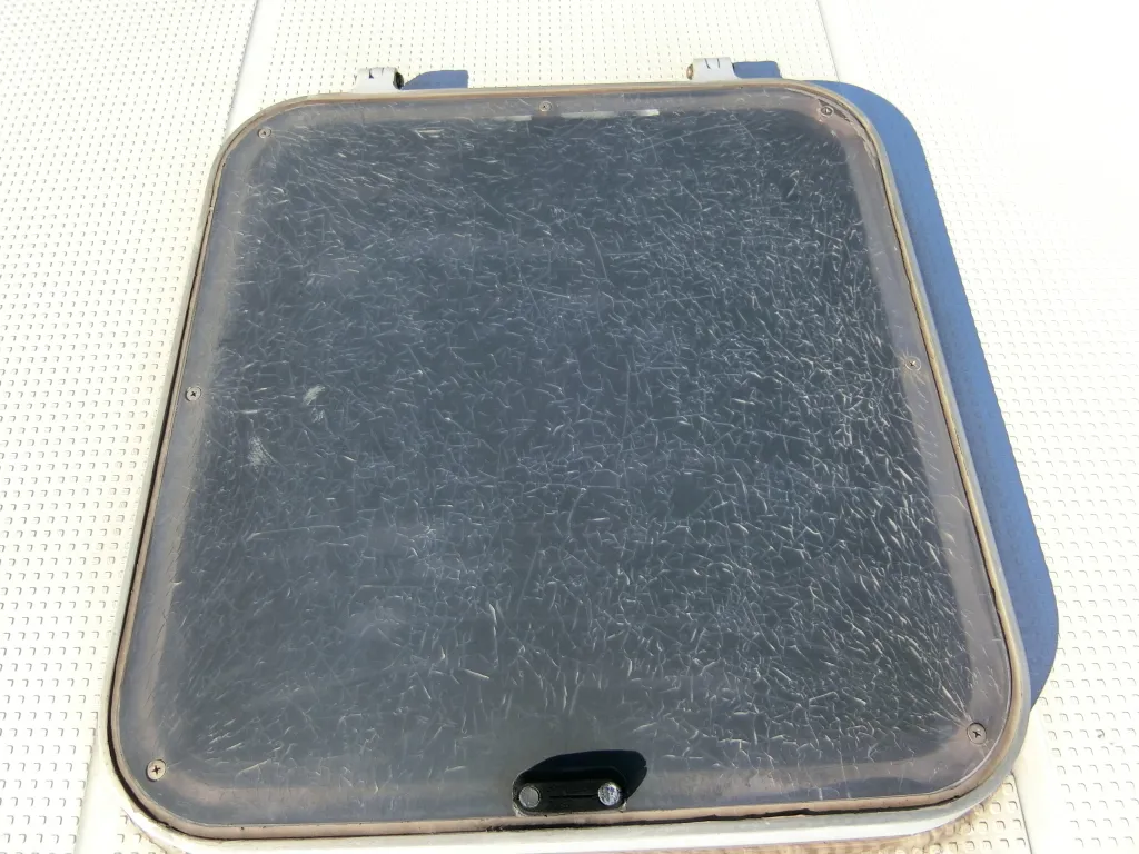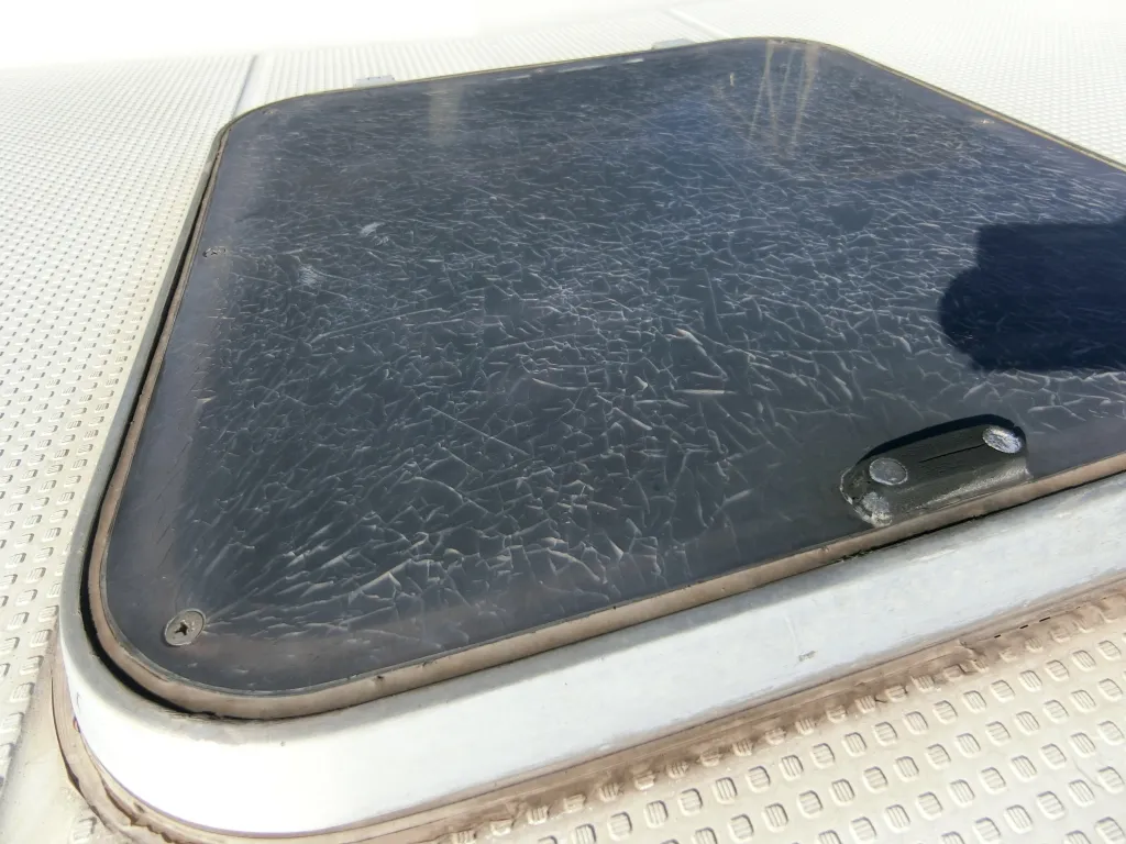 ・トランサムゲートの収納ポケットの蓋に割れが見られます。