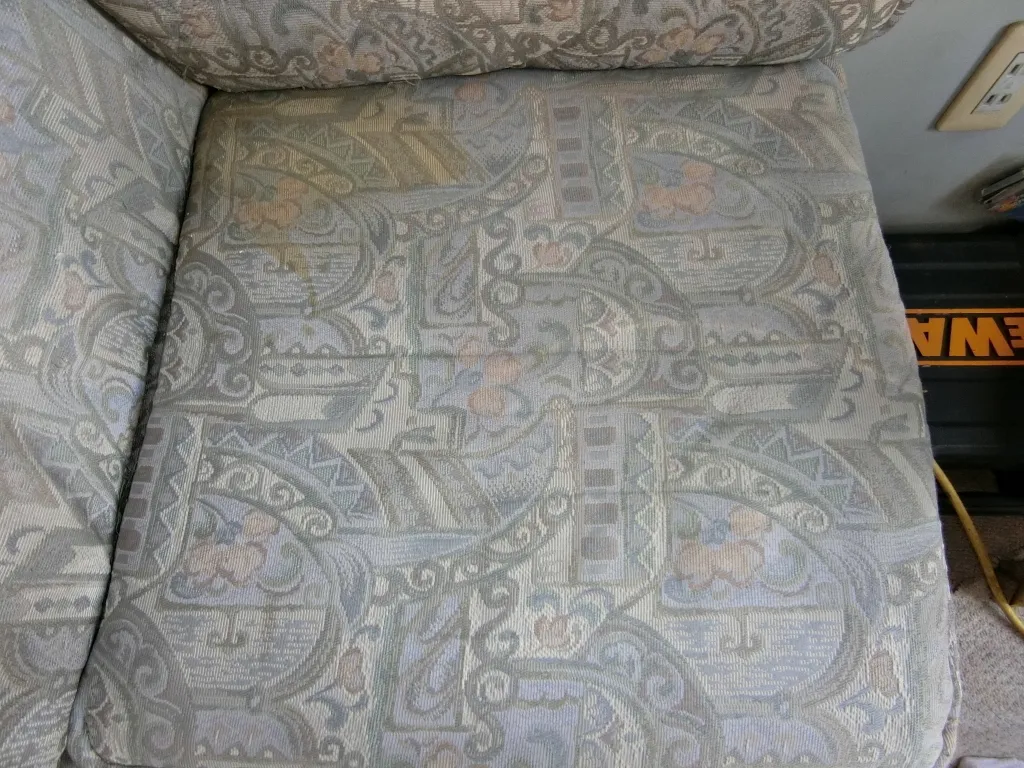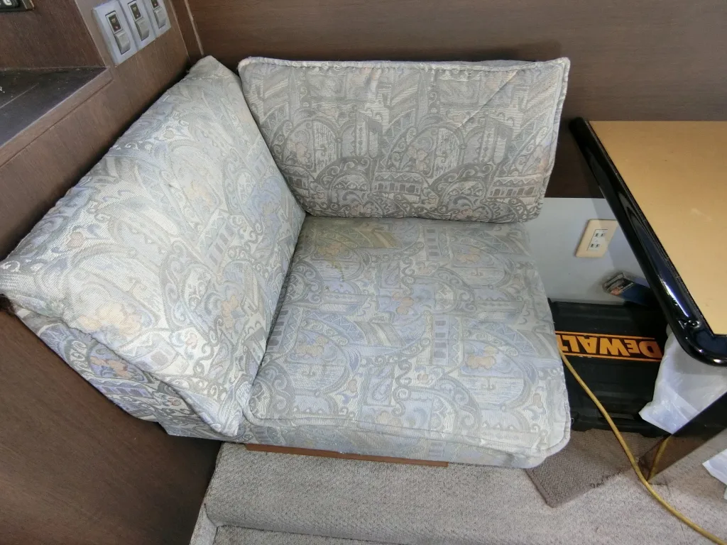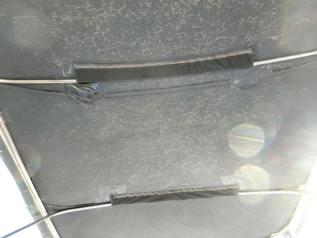 ・ブルーのシートに大きな切れはありませんが、汚れや劣化(特に後部のシート)が見られます。