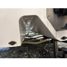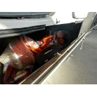 左側の収納内にマリントイレ(手動)が備えられていますが、便座が外れてない状態です。