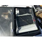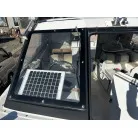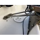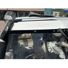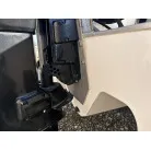 キャビン上部には、ステンレス製の6連のロケットランチャーとアウトリガーがついています。