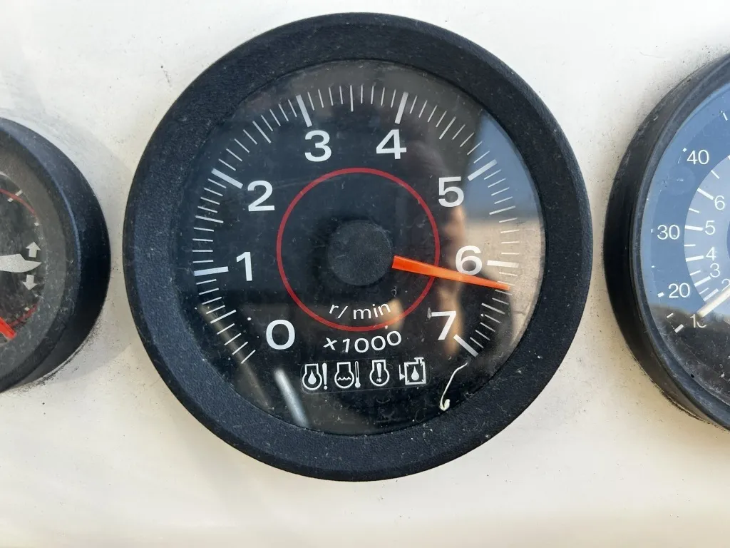サンキャット26は当初、2基のエンジンが搭載されていたモデルですが、平成14年に当該エンジンに載せ替えられています。船舶検査手帳上では、160馬力の連続最大回転数は5,000rpmとなっています。