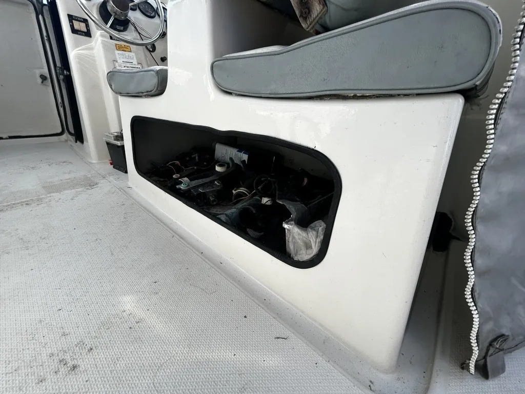 サンキャット26は、広めのデッキスペースと安定した走行性能を備えた人気のモデルです。 本艇は全体的に良好な状態を維持しており、大きな傷や損傷は見られません。 船体には多少の小傷や汚れがありますが、クリーニングすればより綺麗な印象になります。
