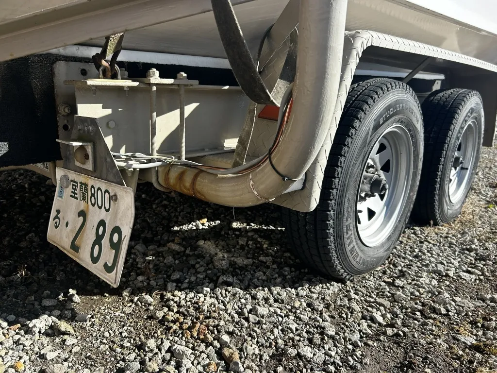 車検切れのトレーラーがセットになります。珍しいアルミ製フレームが採用されており、海水に浸けても錆びにくく、耐久性が高いため、長く利用できます。
