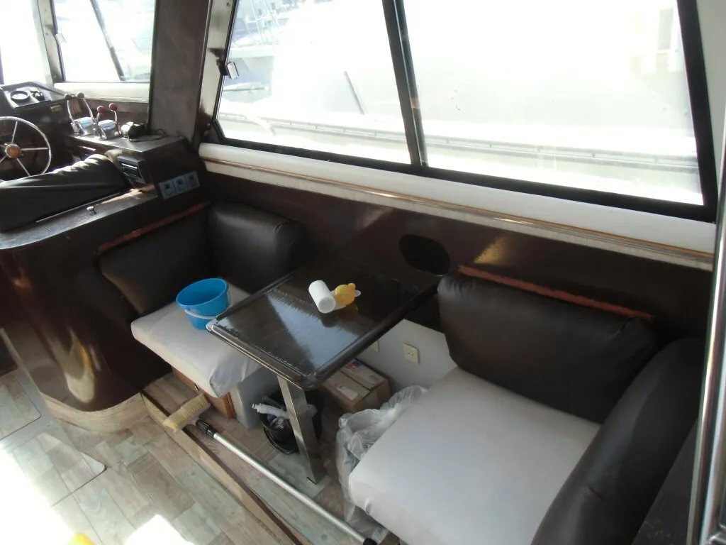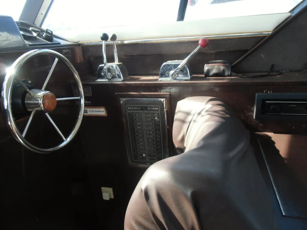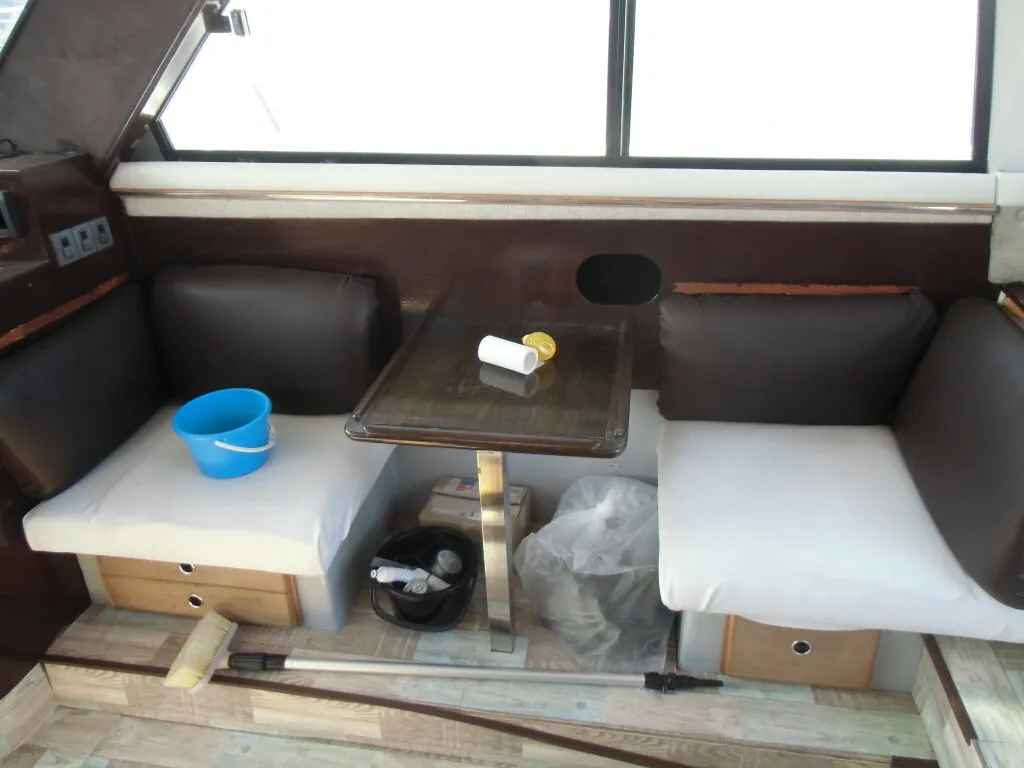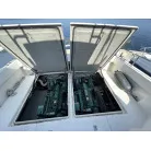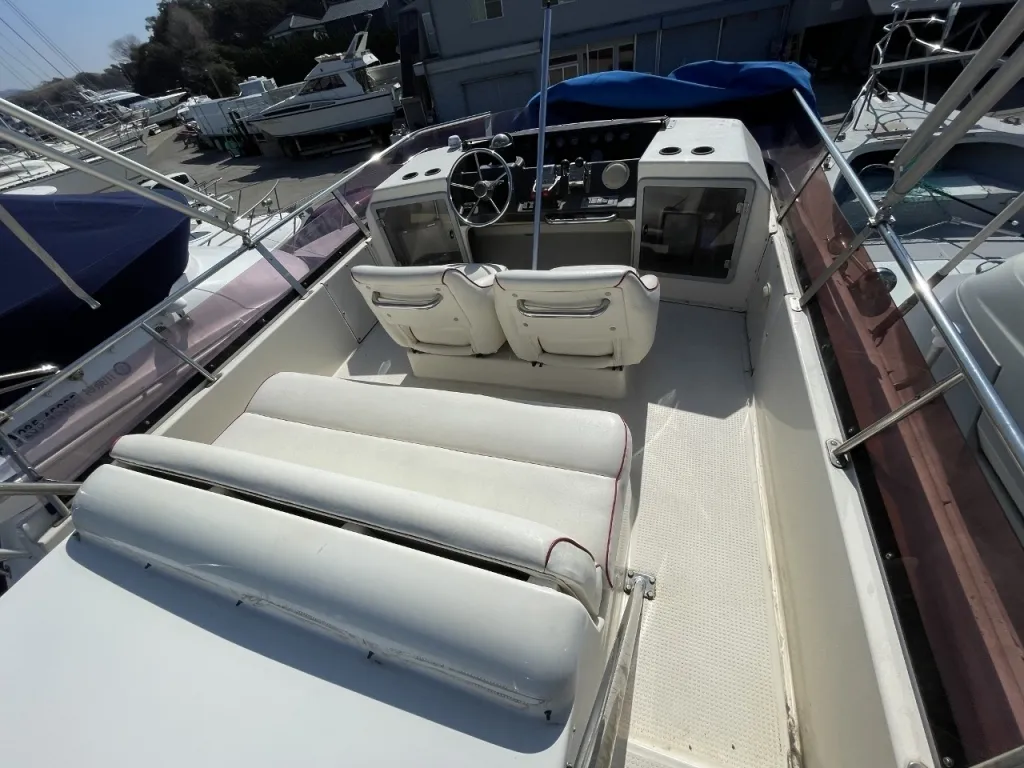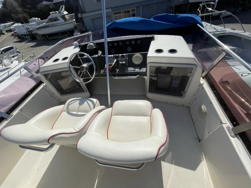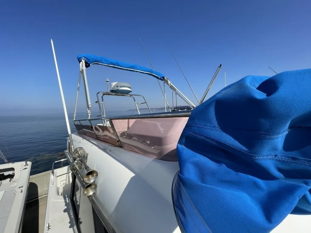 巡航速度は約30ノット、最高速度35ノット位のスピーは出るそうです、現在のオーナーさんが購入時消耗部品交換など整備しました、現在エンジンの不調は無かったそうです。