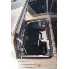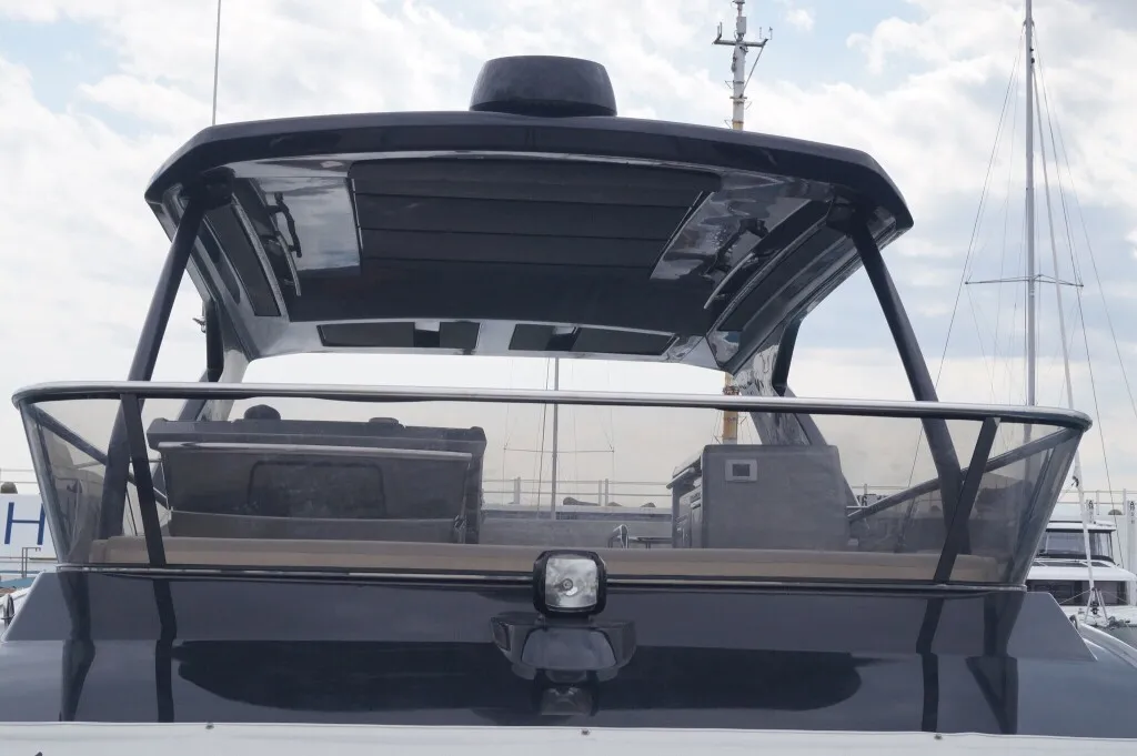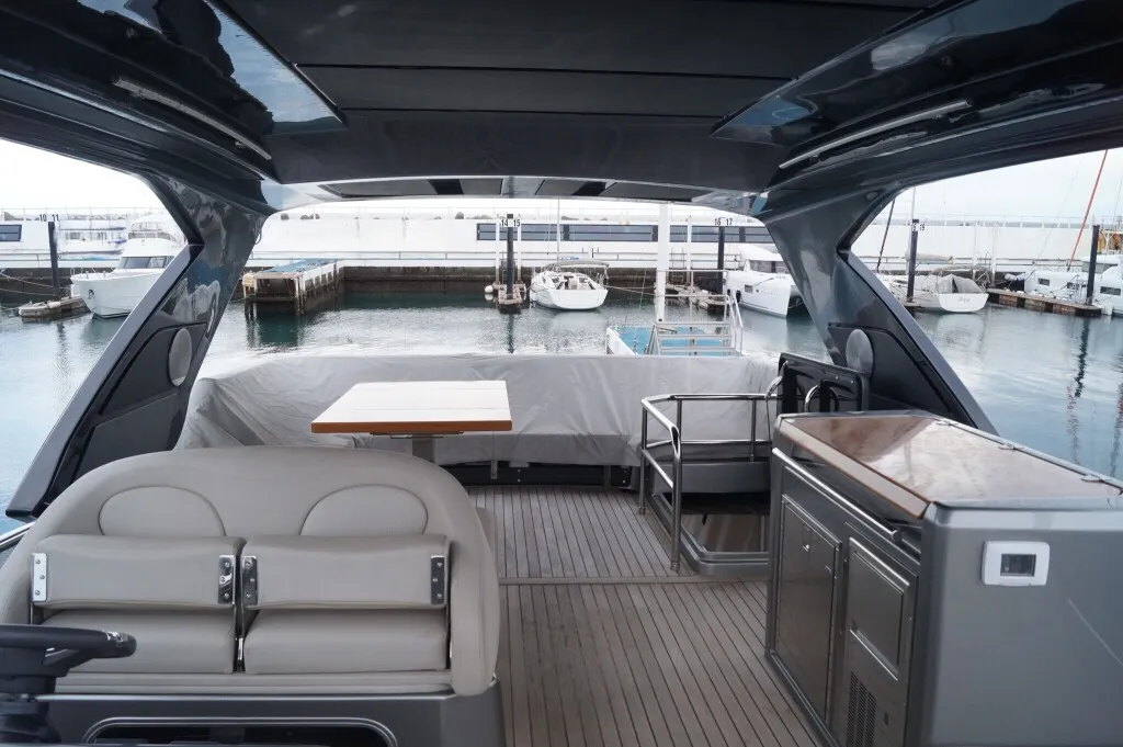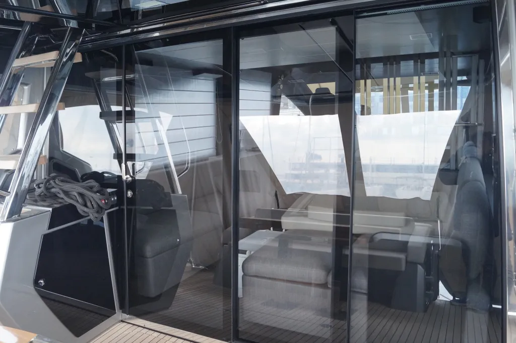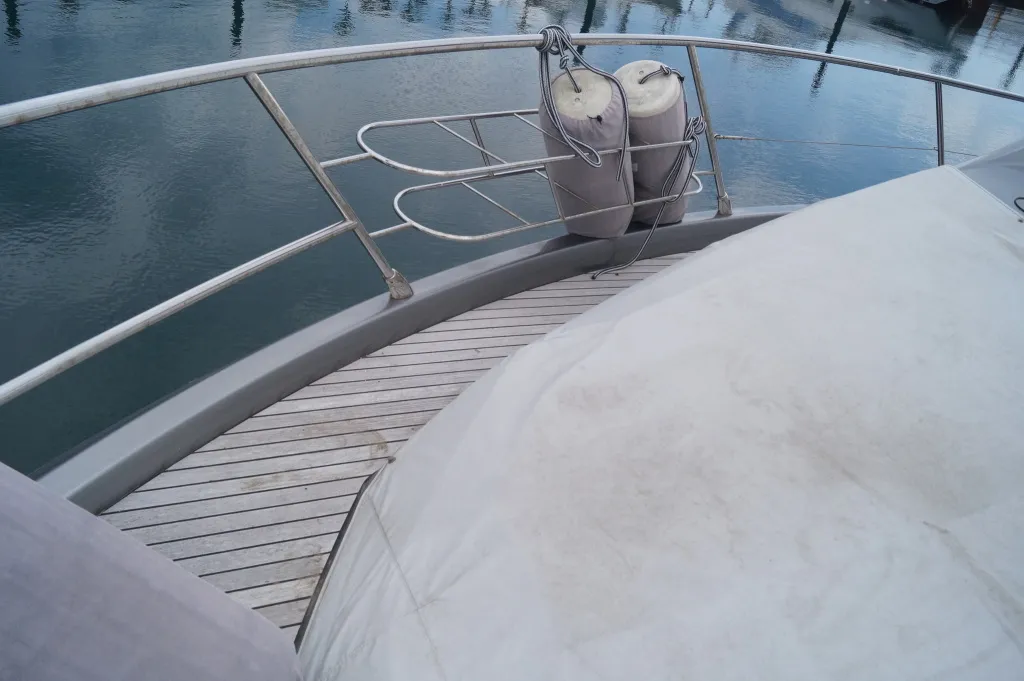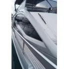 マリーナの中でもひときわ目を惹くスタイリッシュなシルバートーンの外装は、船全体に高級感を与えるとともに、まさに自分だけの特別な一艇と思わせてくれるデザインです。