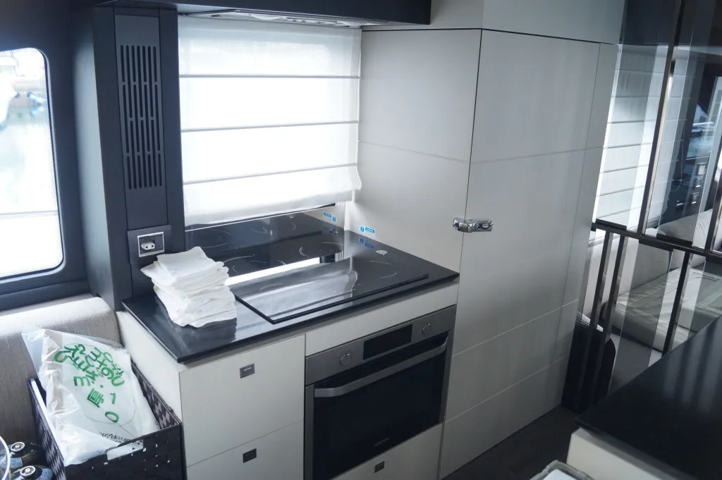 船内空間も、さすがはイタリア製のクルーザーと思わせるような上質な上質な内装に仕上がっていて、乗船するゲストへの最高のおもてなしとなるでしょう。