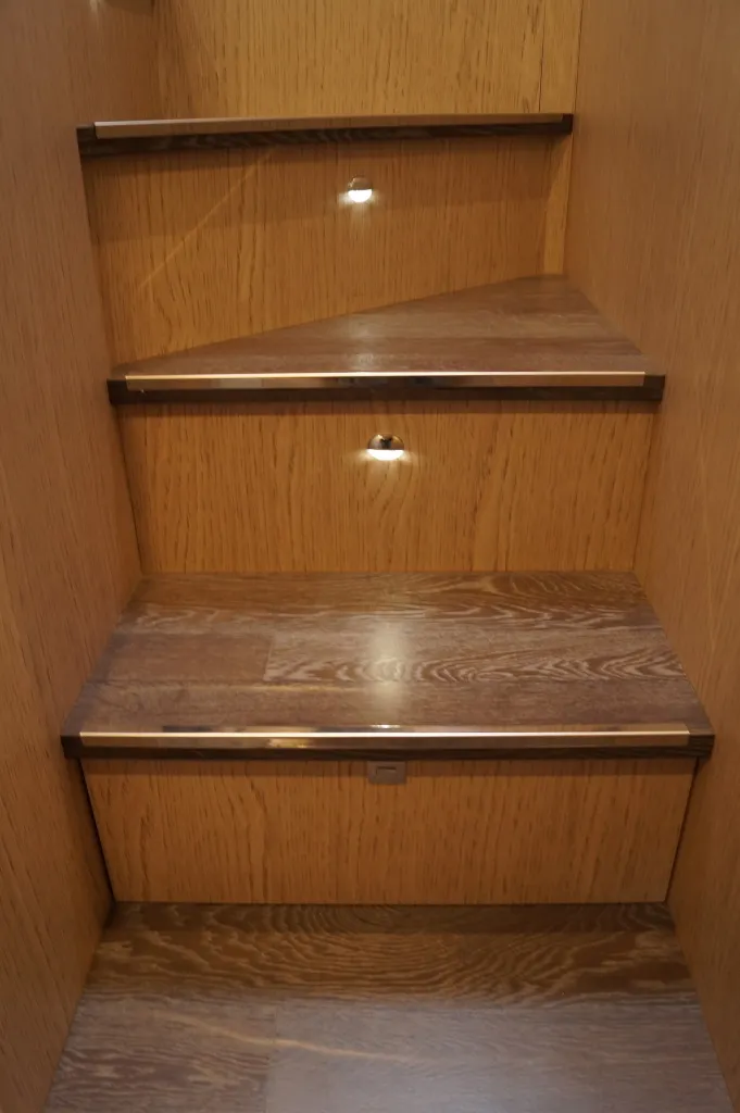 サロンから階段を下ると、船首・船尾にそれぞれ広いベッドルームがあります。